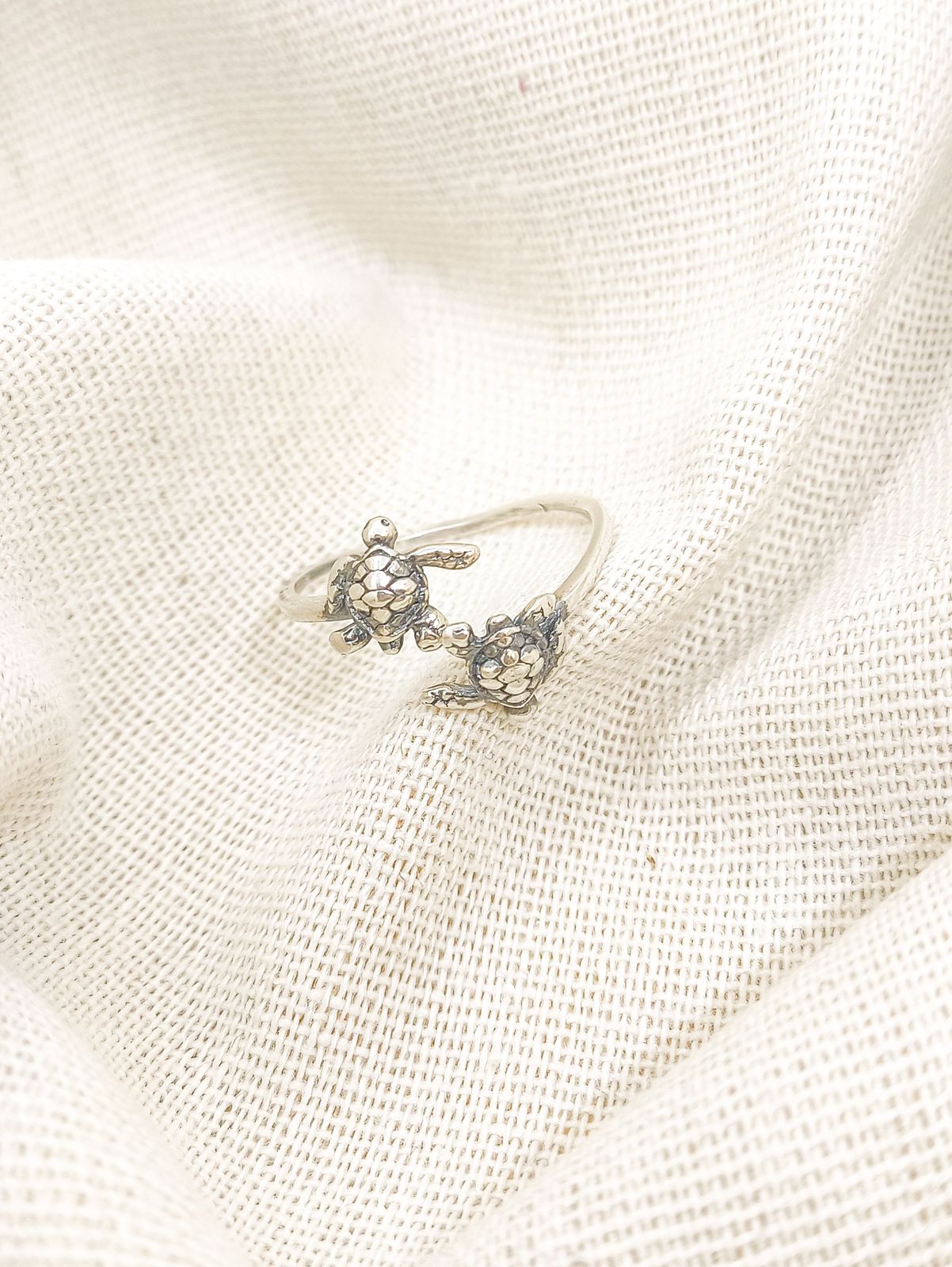 Anel prata 925 entrelaçado com 2 tartarugas.