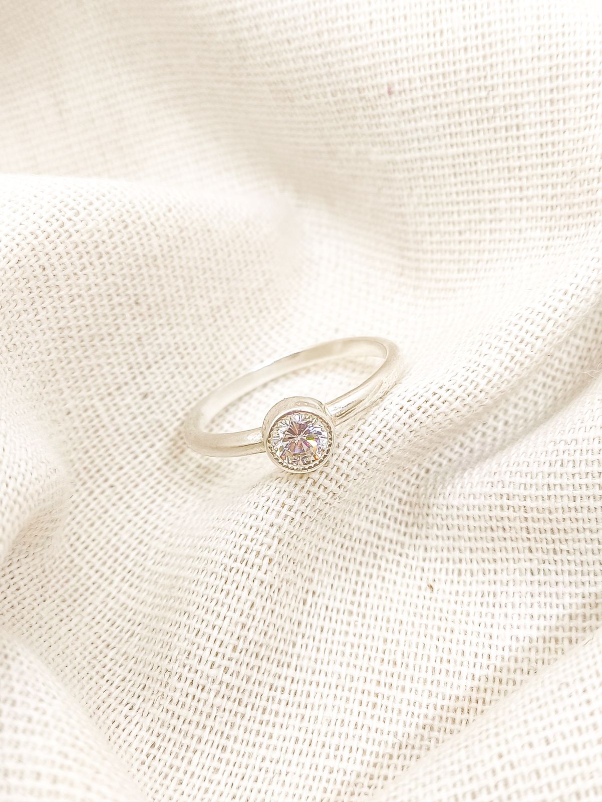 Anel solitário prata 925 com ponto de luz arredondado ( estilo Italiano ).