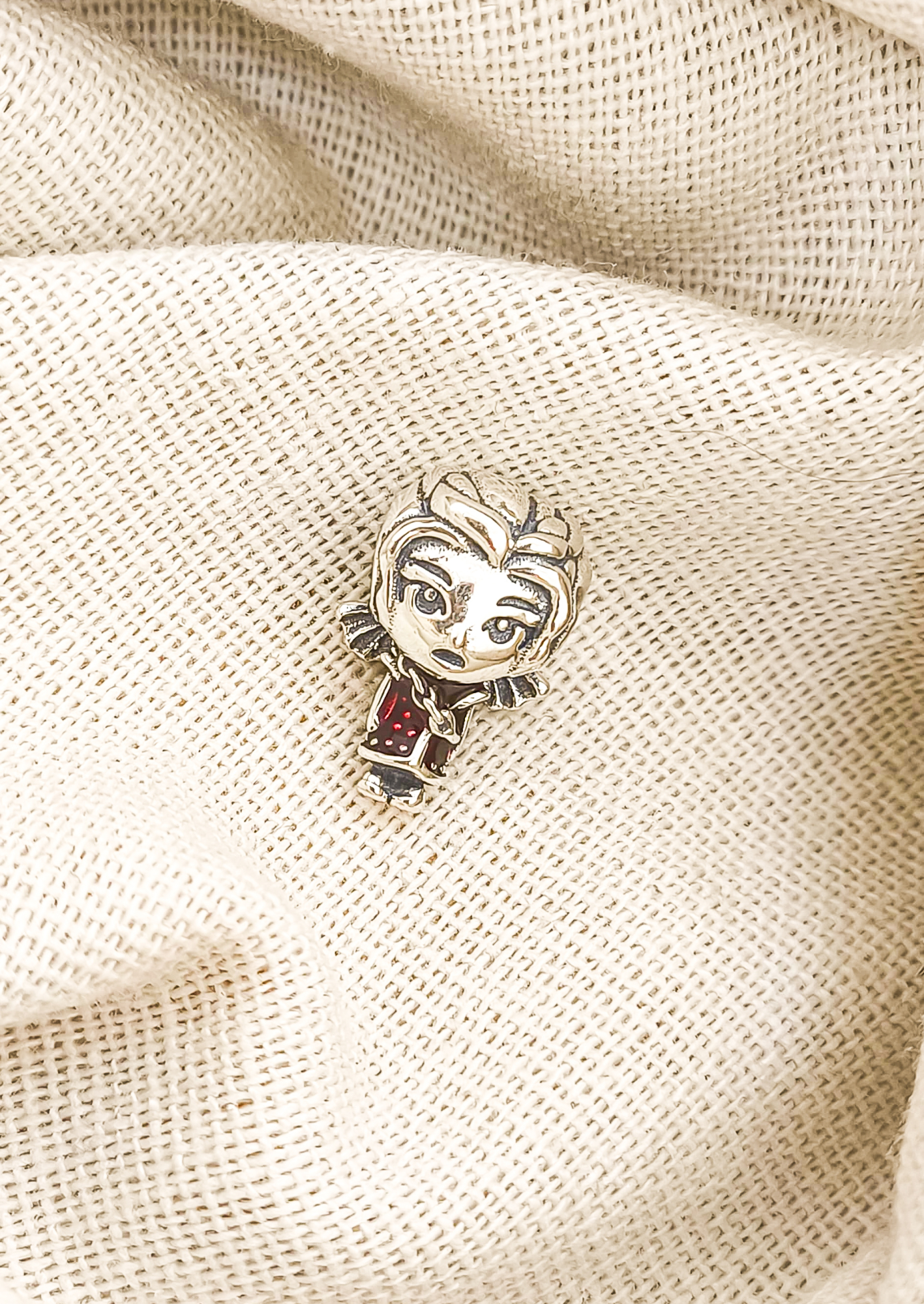 Berloque Personagem Targaryen ( Game of Trones ) com Asas em prata 925, vestidinho resinado em vermelho.