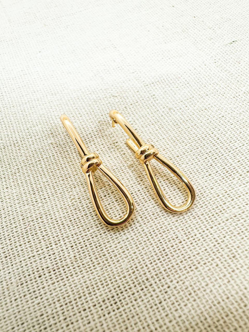 Brinco em banho de ouro 18 k, argola anzol com nó.