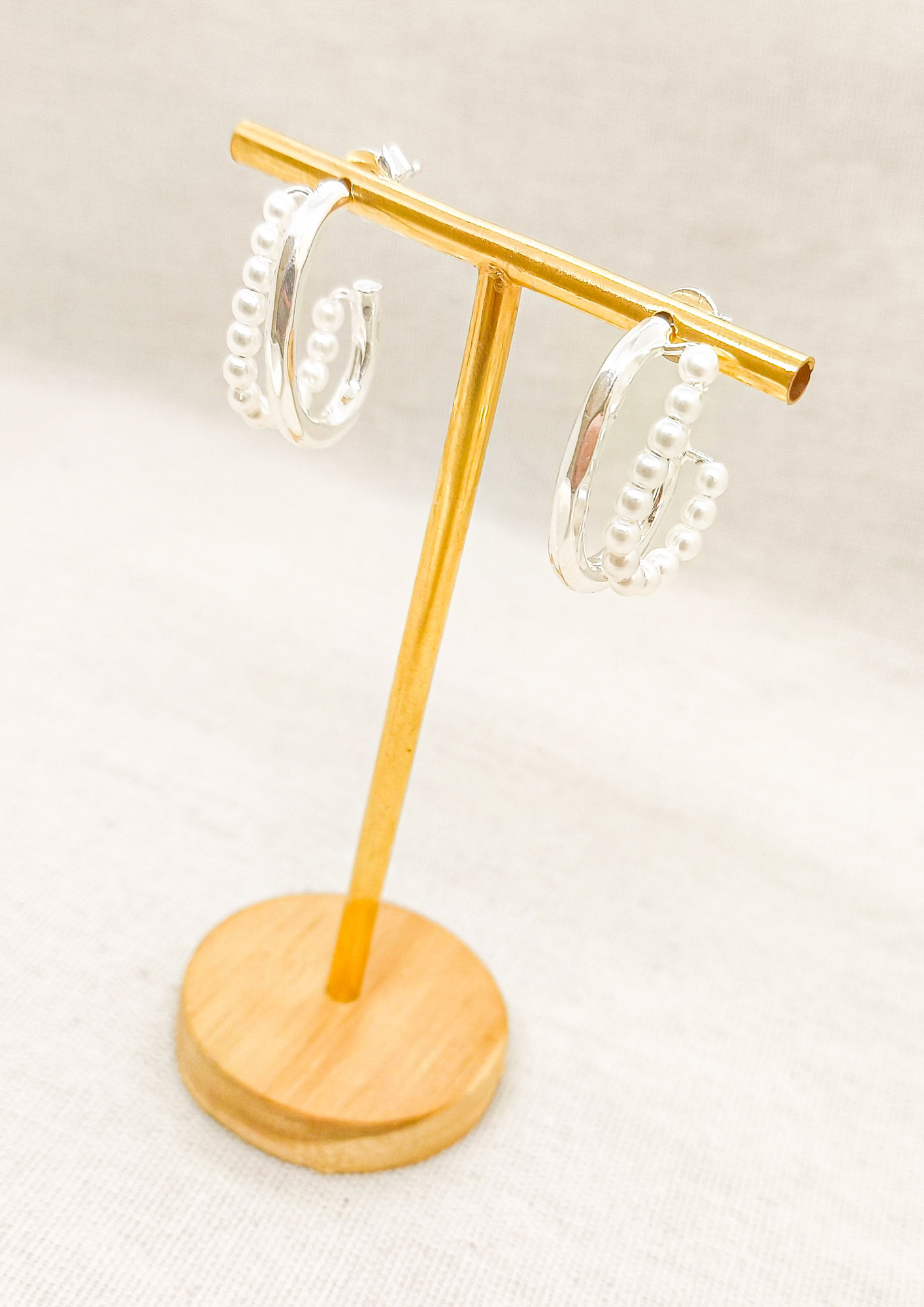 Brinco Argola Prata 2 Hastes com Mini Pérolas
