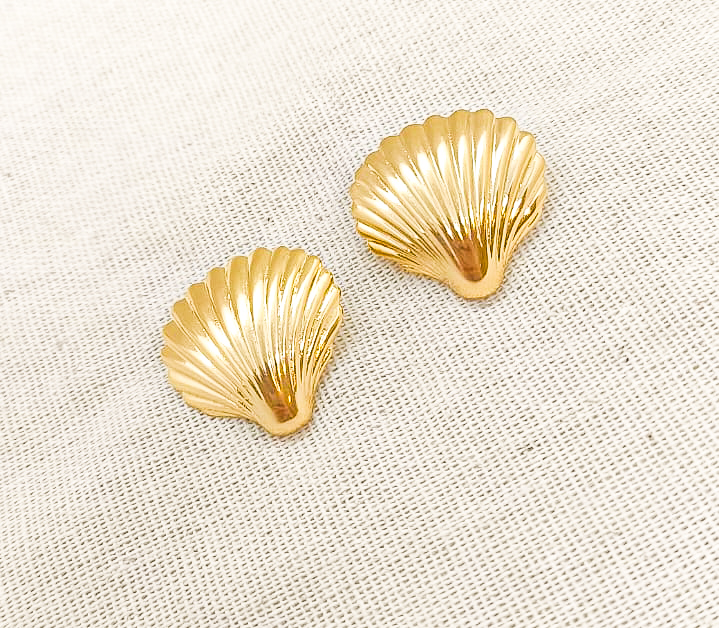 Brinco concha liso, em banho de ouro. Tamanho: 20mm.