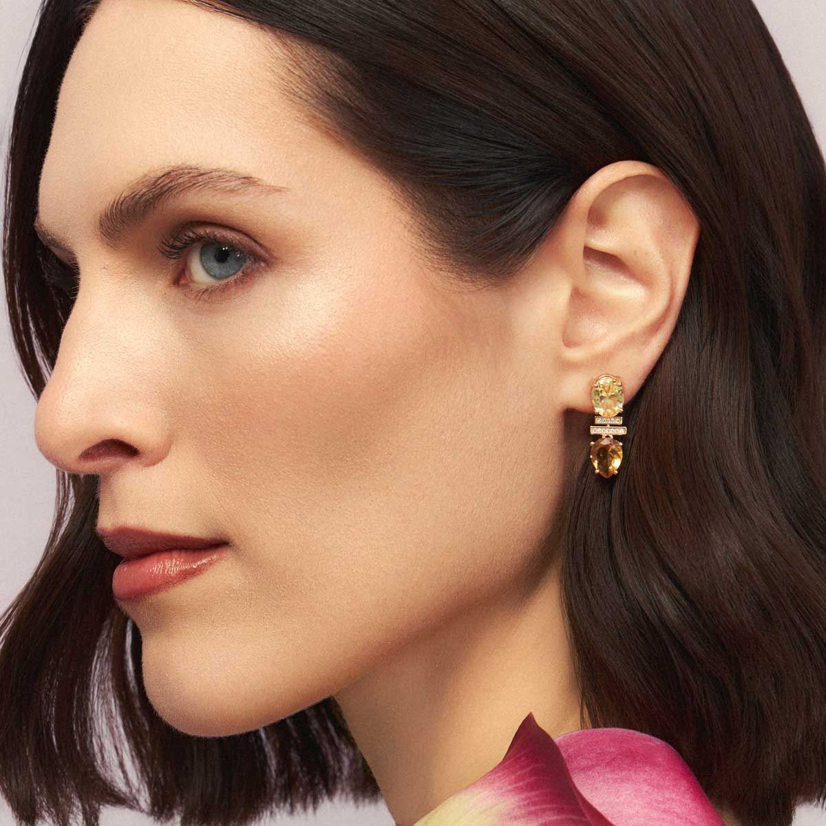 Página Inicial / Brincos / Brinco cristais morganita e citrino com 2 hastes cravejadas