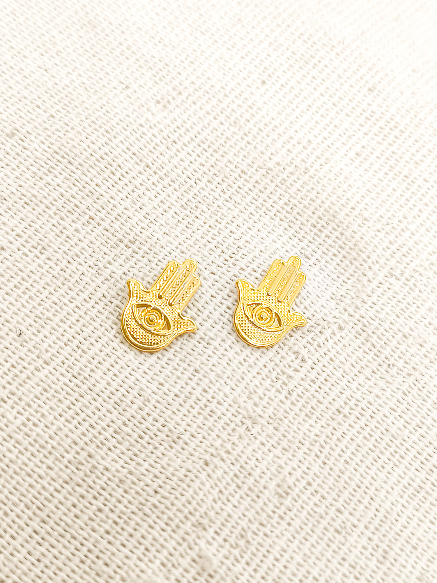 Brinco de Pino Mão de Hamsá em banho de ouro 18K.