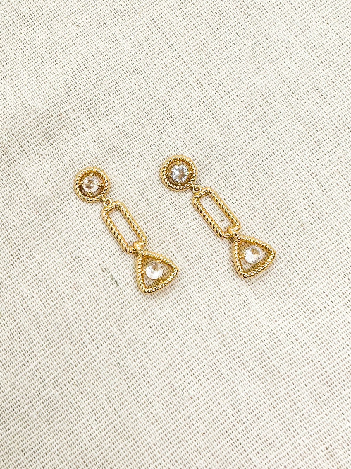 Brinco Dourado Pendulo Geométrico, estrutura torcida.