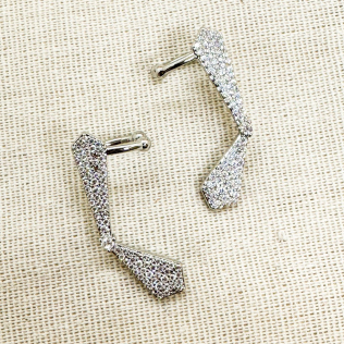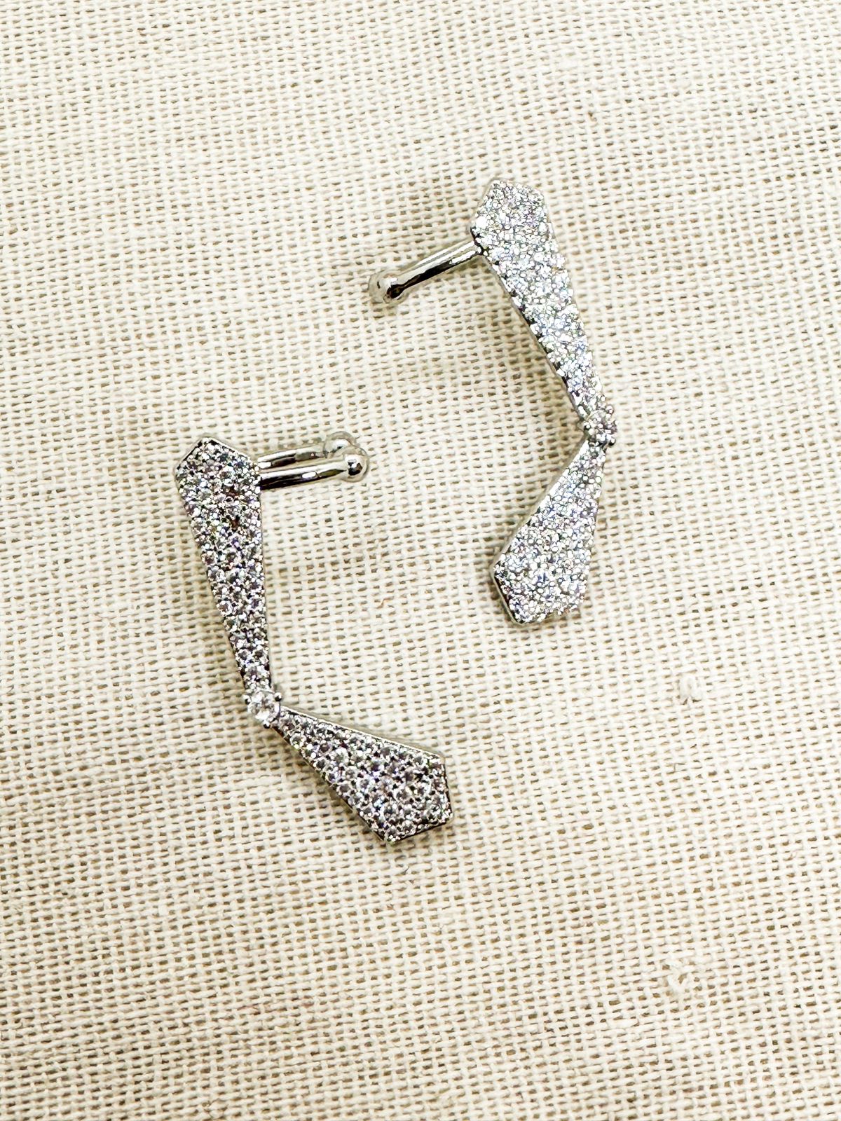 Brinco ear cuff geométrico cravejado em banho de ródio.