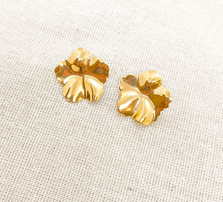 Brinco banho de ouro 18k, flor orgânica pequena. Tamanho: 20mm. .