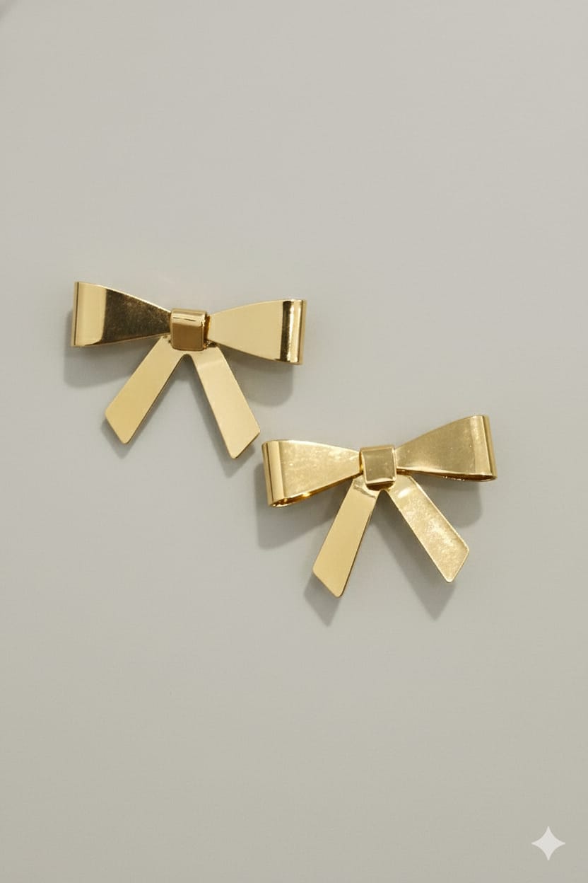 Brinco em banho de ouro 18k / Prata Leve, formato de laço m fita. Tamanho: 2cm.