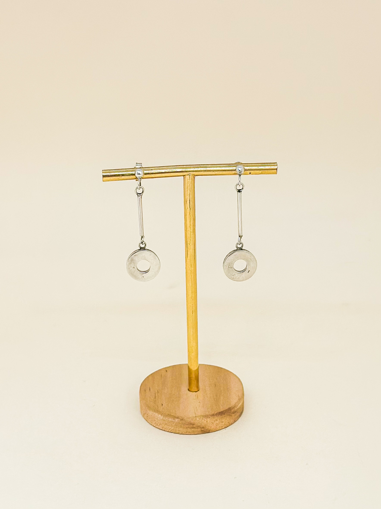 Brinco em prata 925 com pingente circular vazado.