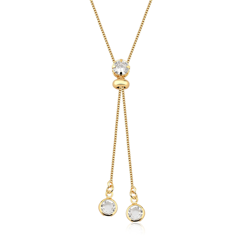 Corrente Gravata em Banho de Ouro 18K com pontos de luz. 1 Cristal Maior - 9cm. 2 Cristais Menores - 0,5cm.