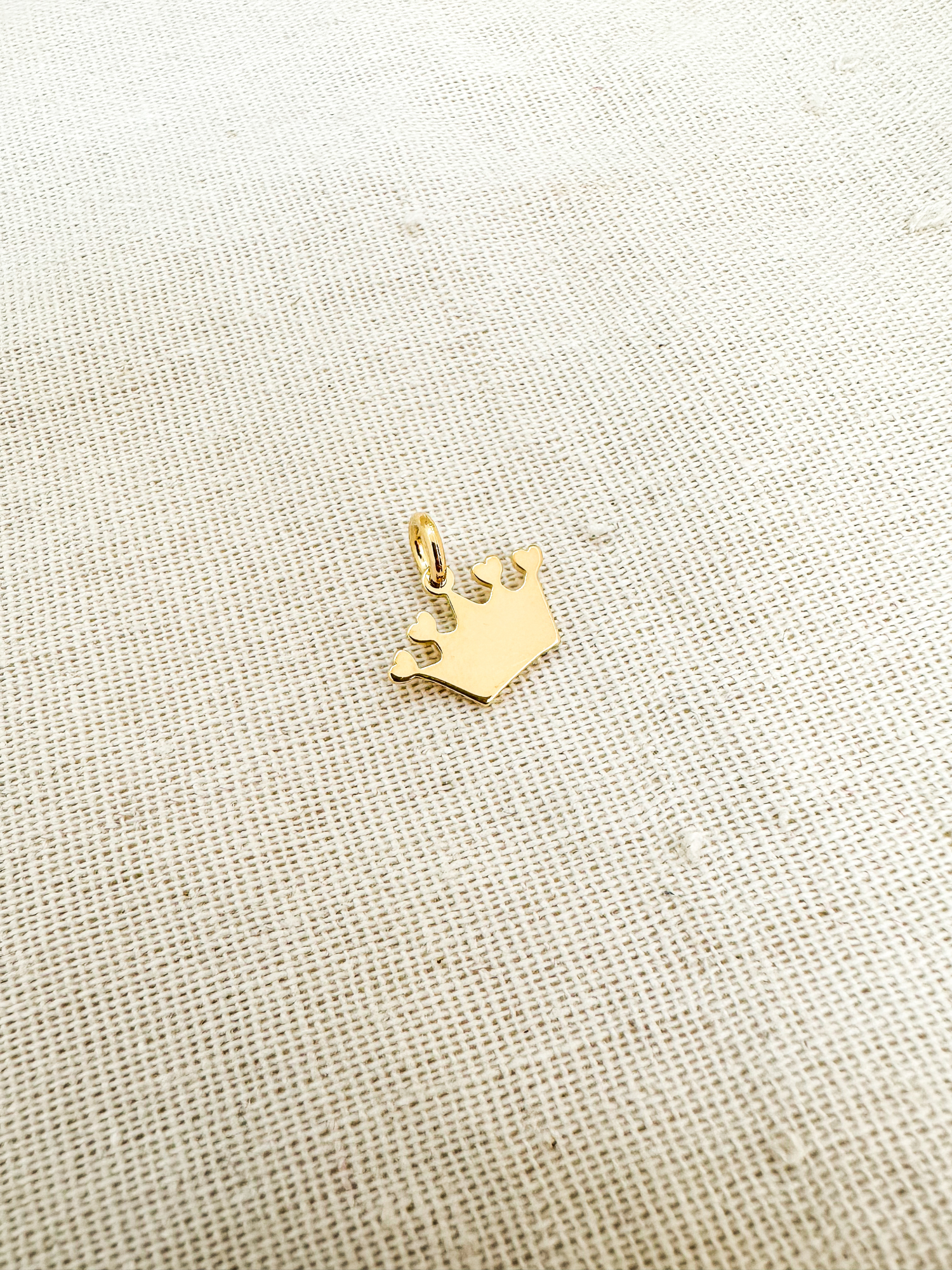Pingente em banho de ouro 18k, modelo em formato de coroa, liso. Tamanho: 1,5cm de altura e 1 cm de largura.