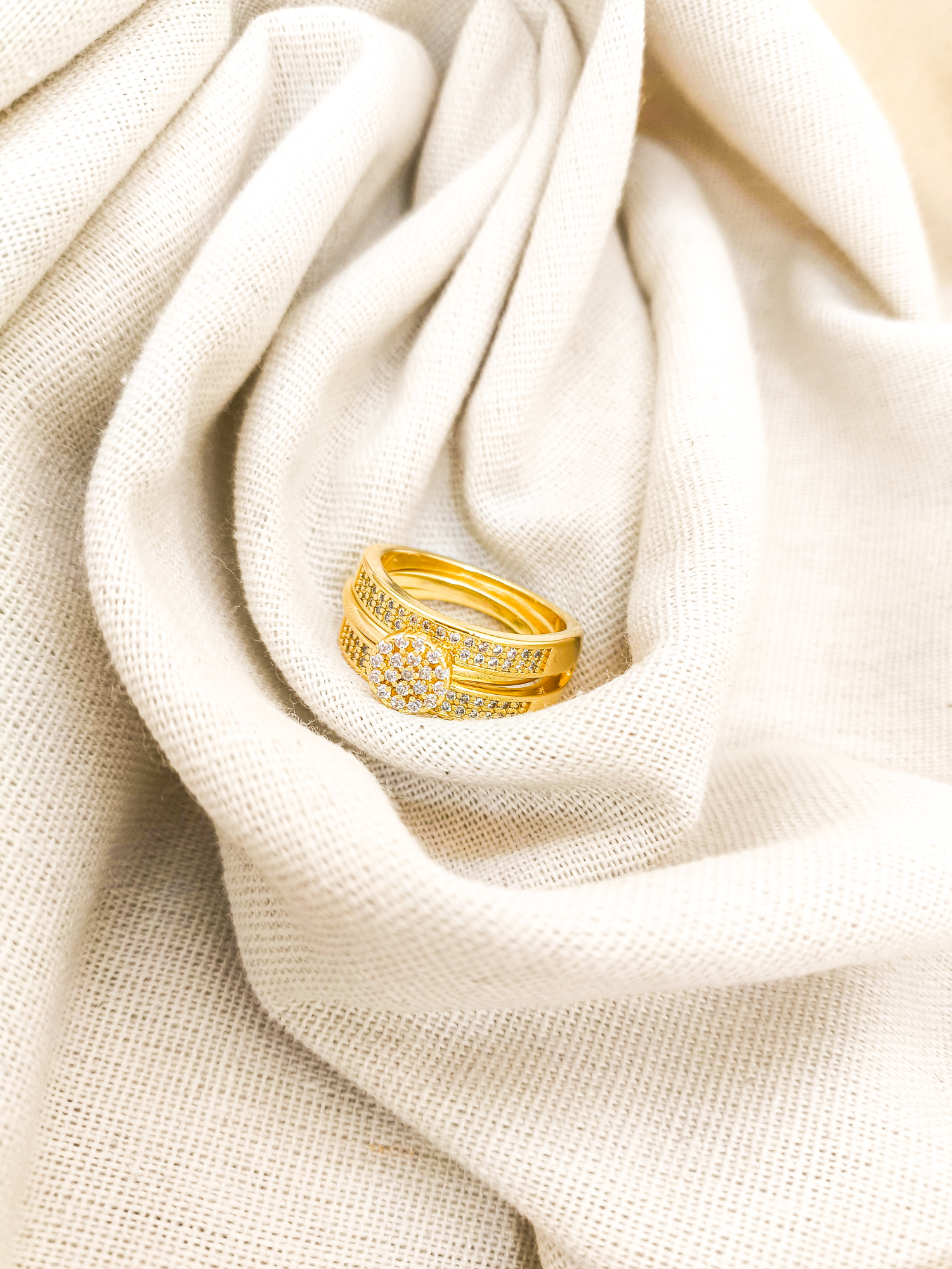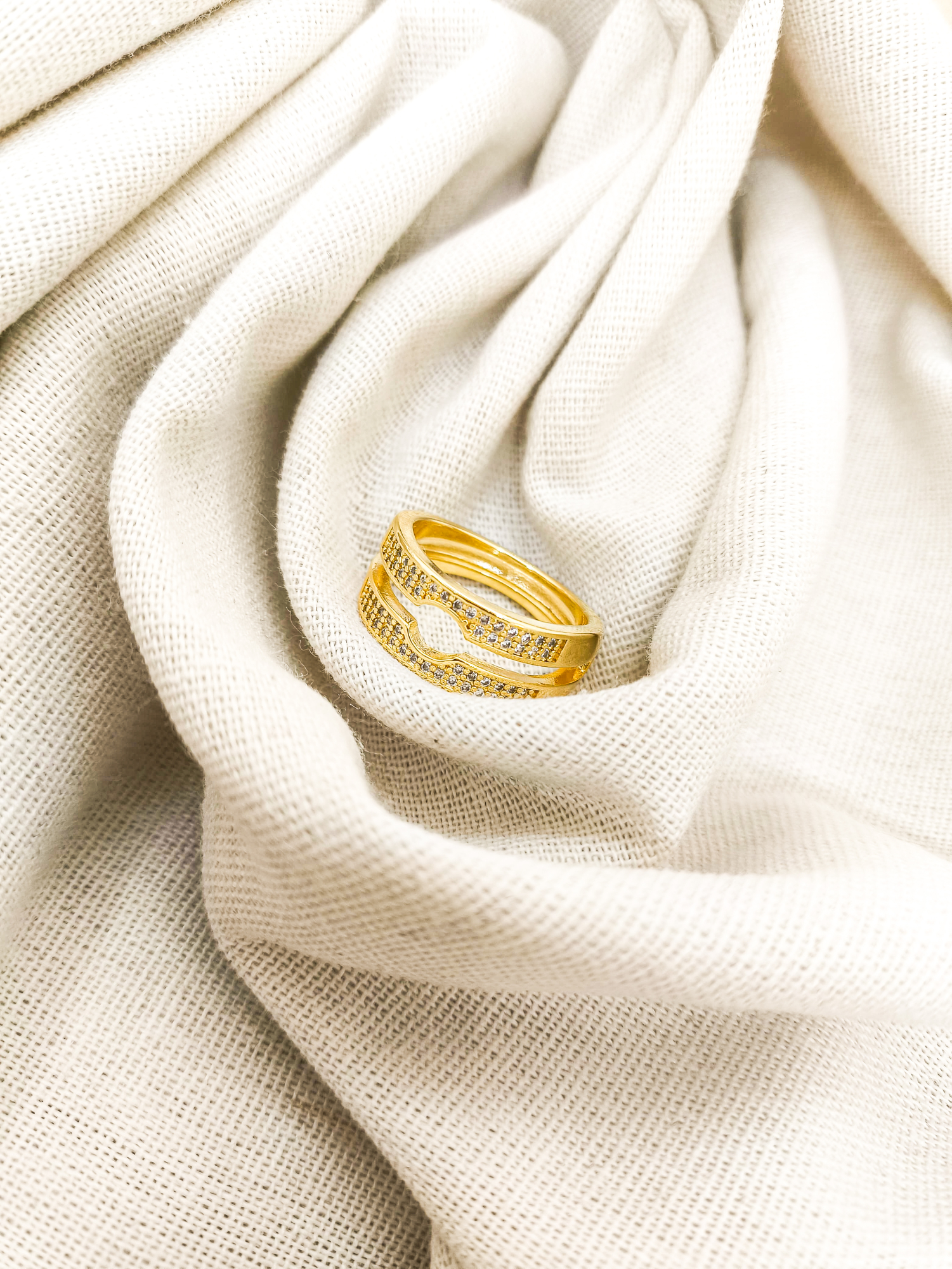 Anel em banho de ouro 18k, réplica de joalheria.Solitário que encaixa em um aparador, ambos cravejados em zircônia branca. Pode ser usado separado.