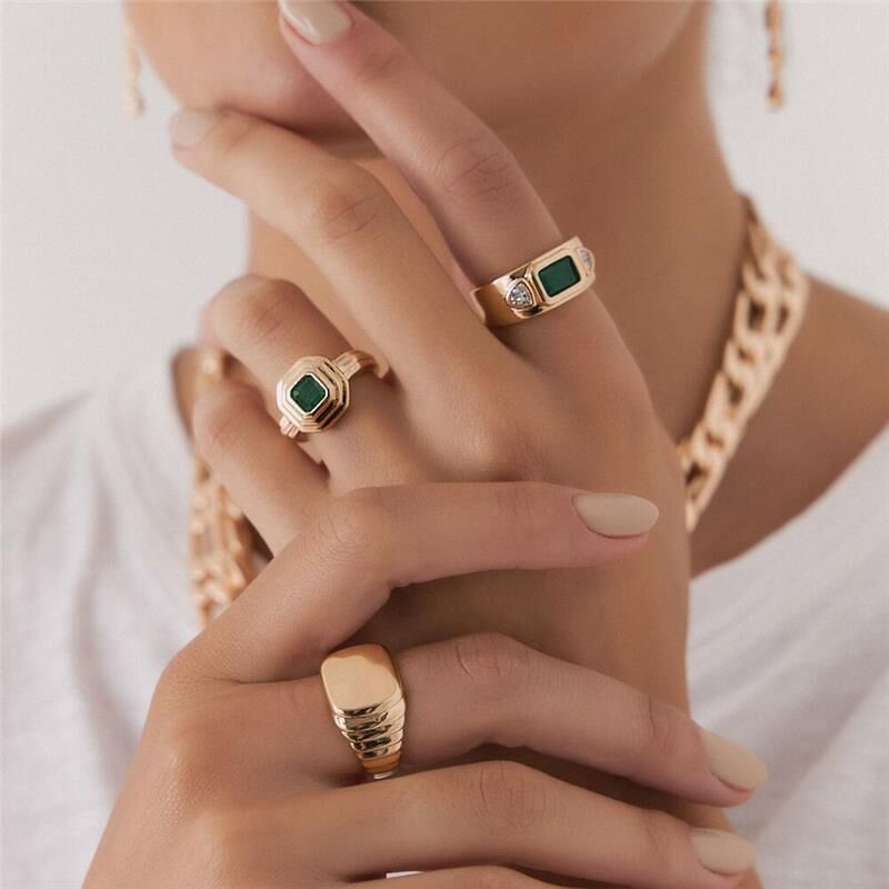 Página Inicial / Anéis / Anel com cristal quadrado de esmeralda