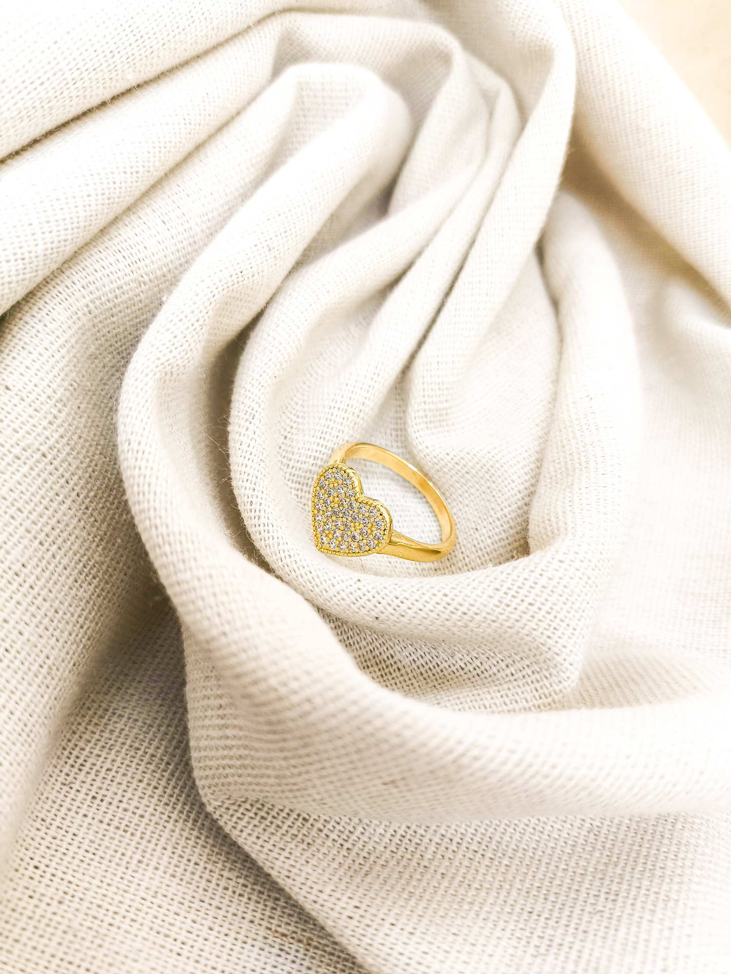 Anel coração cravejado