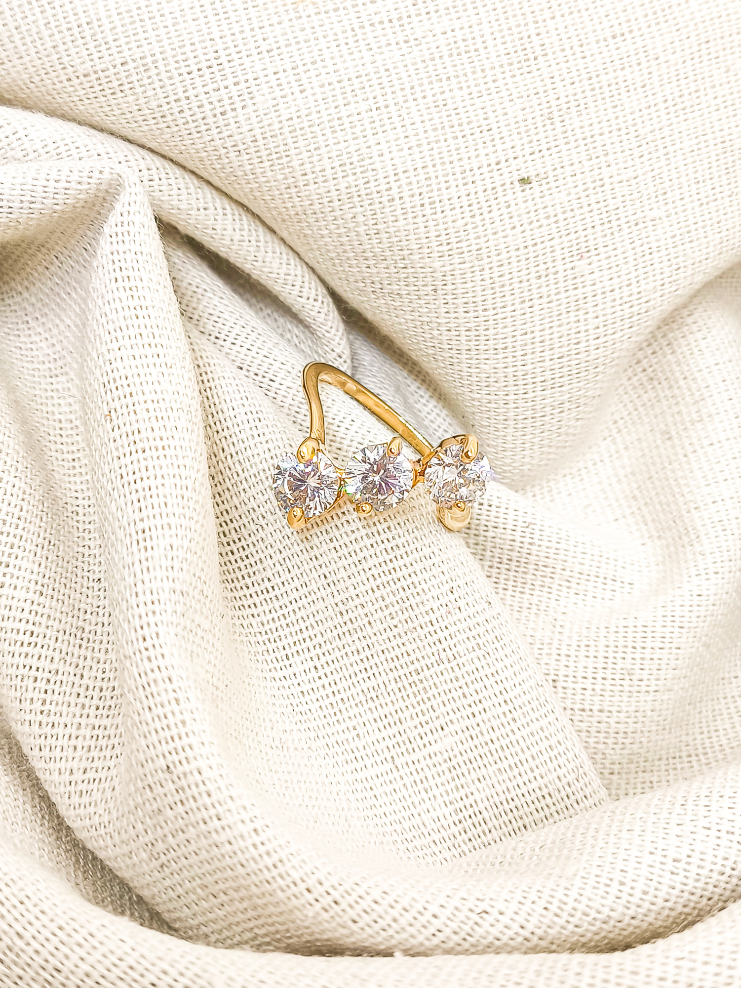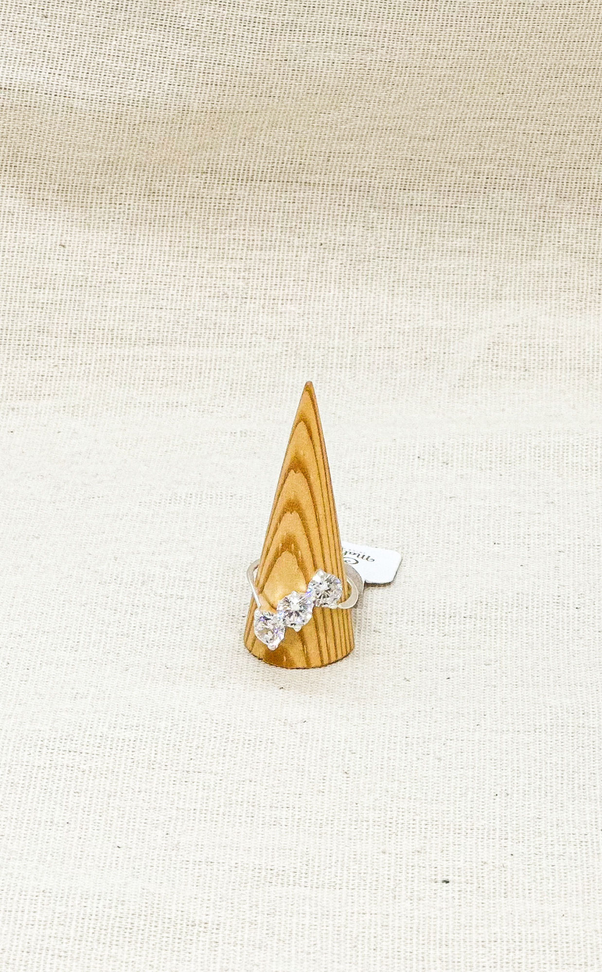 ANEL PRATA TORCIDO 3 ZIRCÔNIAS DE 7MM EM FILEIRA.