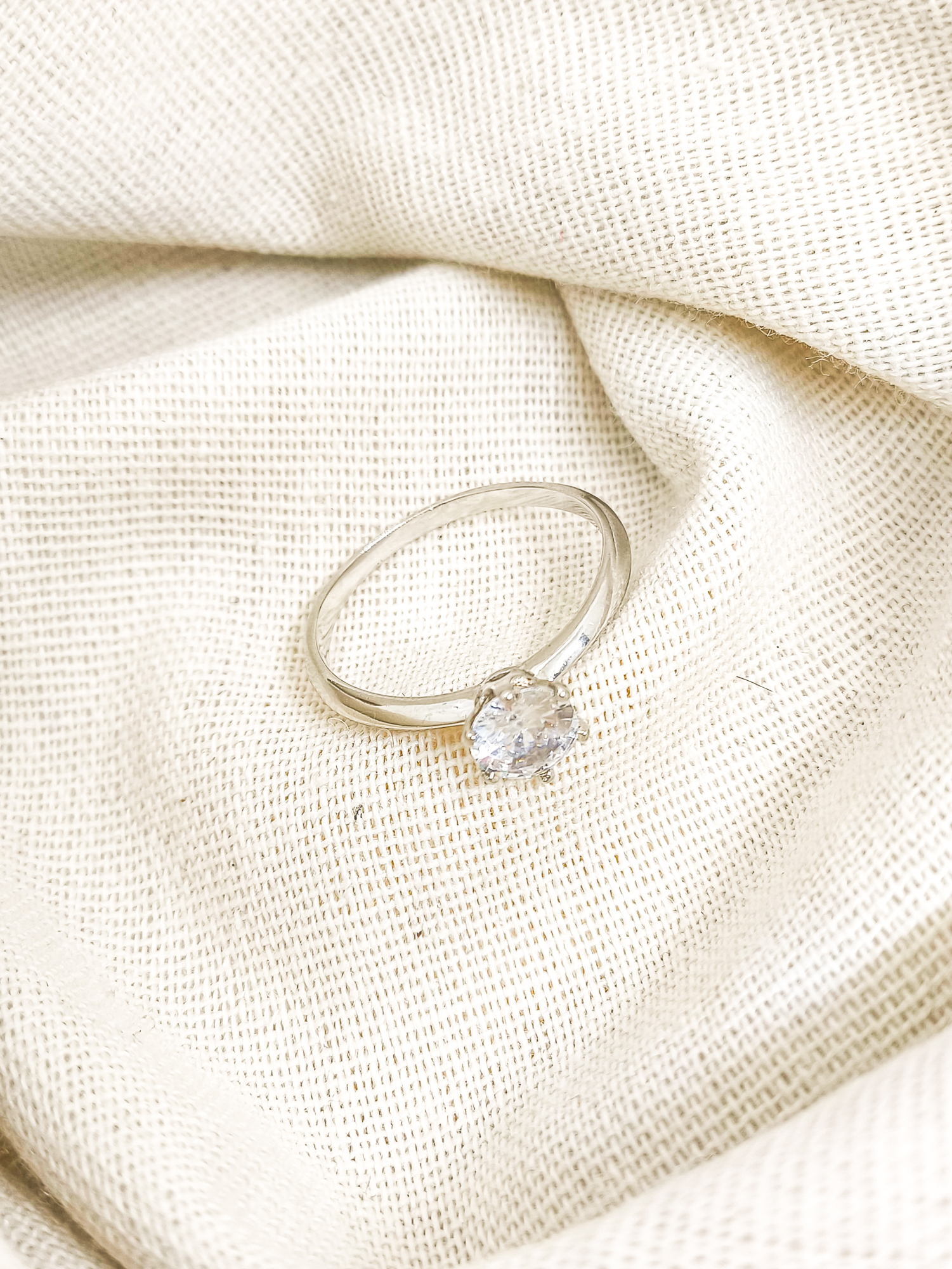 Anel prata 925 com banho de ródio branco, modelo solitário com zircônia de 6 pontas 7mm.