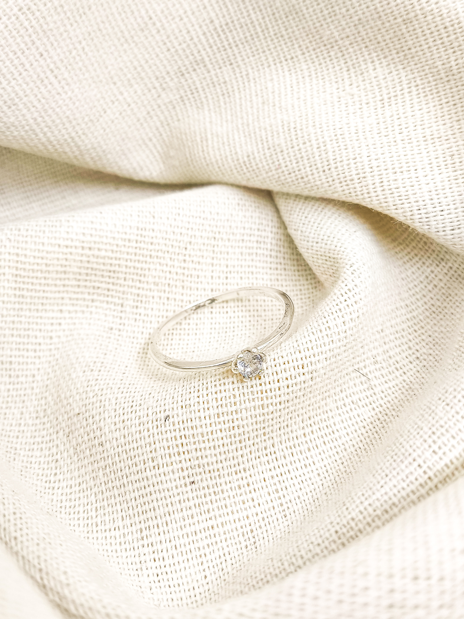 Anel prata 925, aro liso com zircônia 4mm, com 6 pontas. Garra baixa 4mm.
