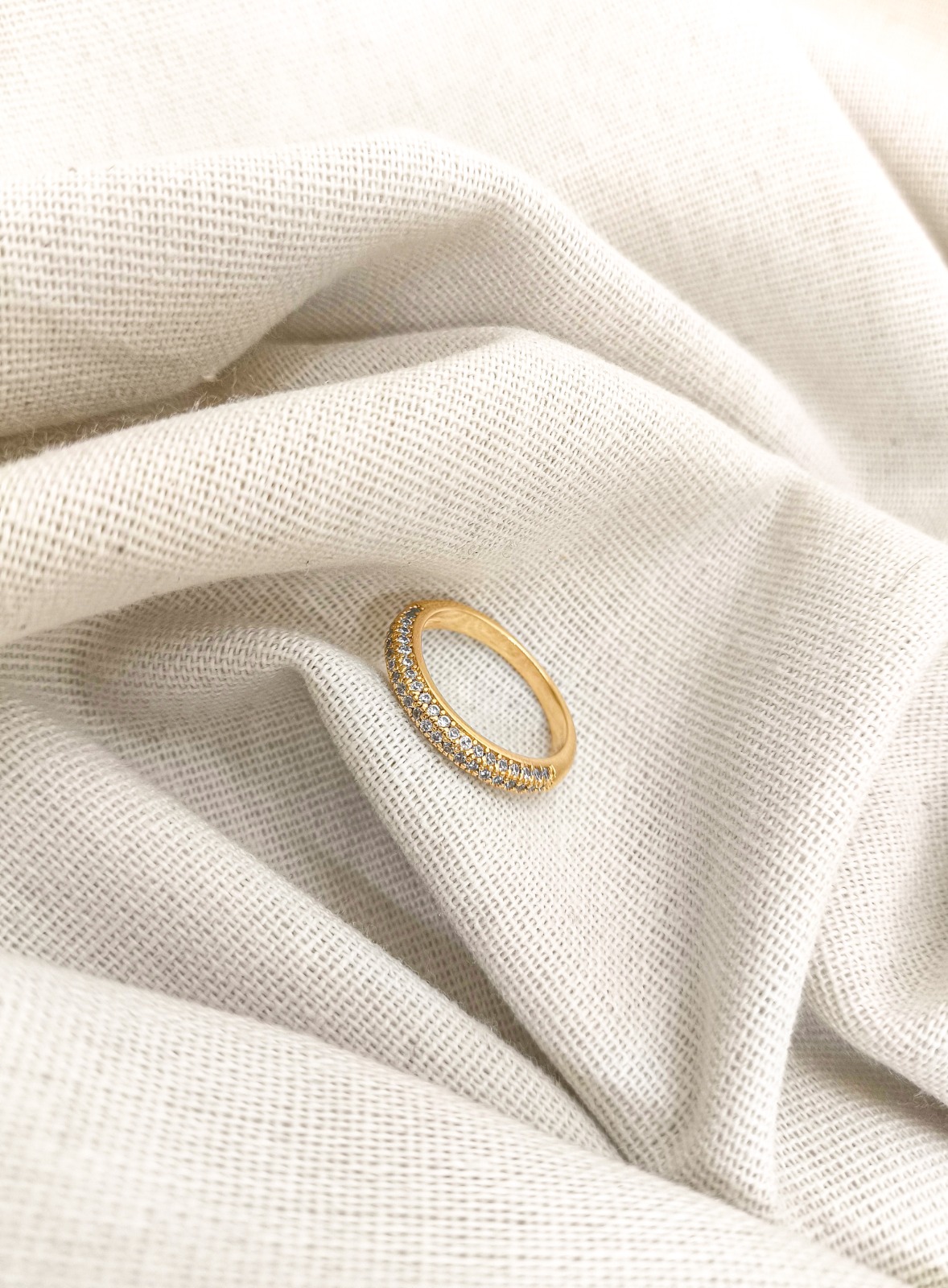 Anel Aparador Tradicional em banho de ouro 18K com 5 fileiras de zircônias.