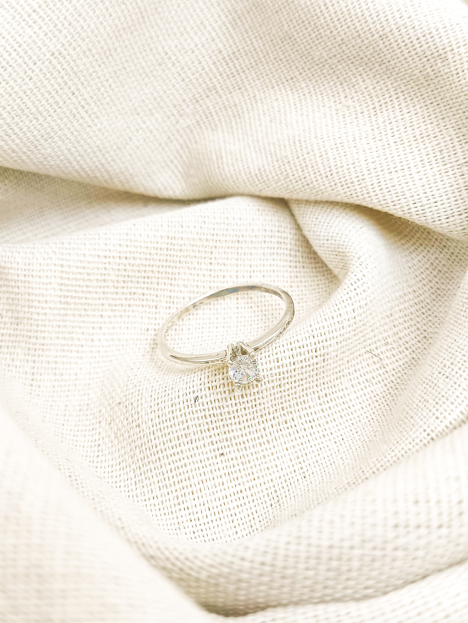 Solitário em prata 925. aro fino e liso, com zircônia 4 pontas.
