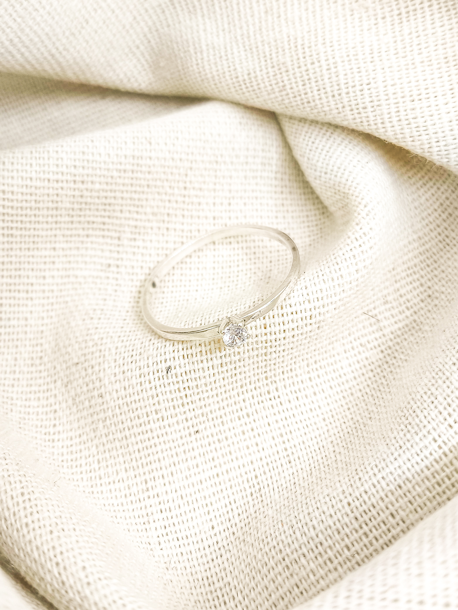 Anel em prata 925, solitário baixo com zircônia 3mm,com garra de aproximadamente 4mm.