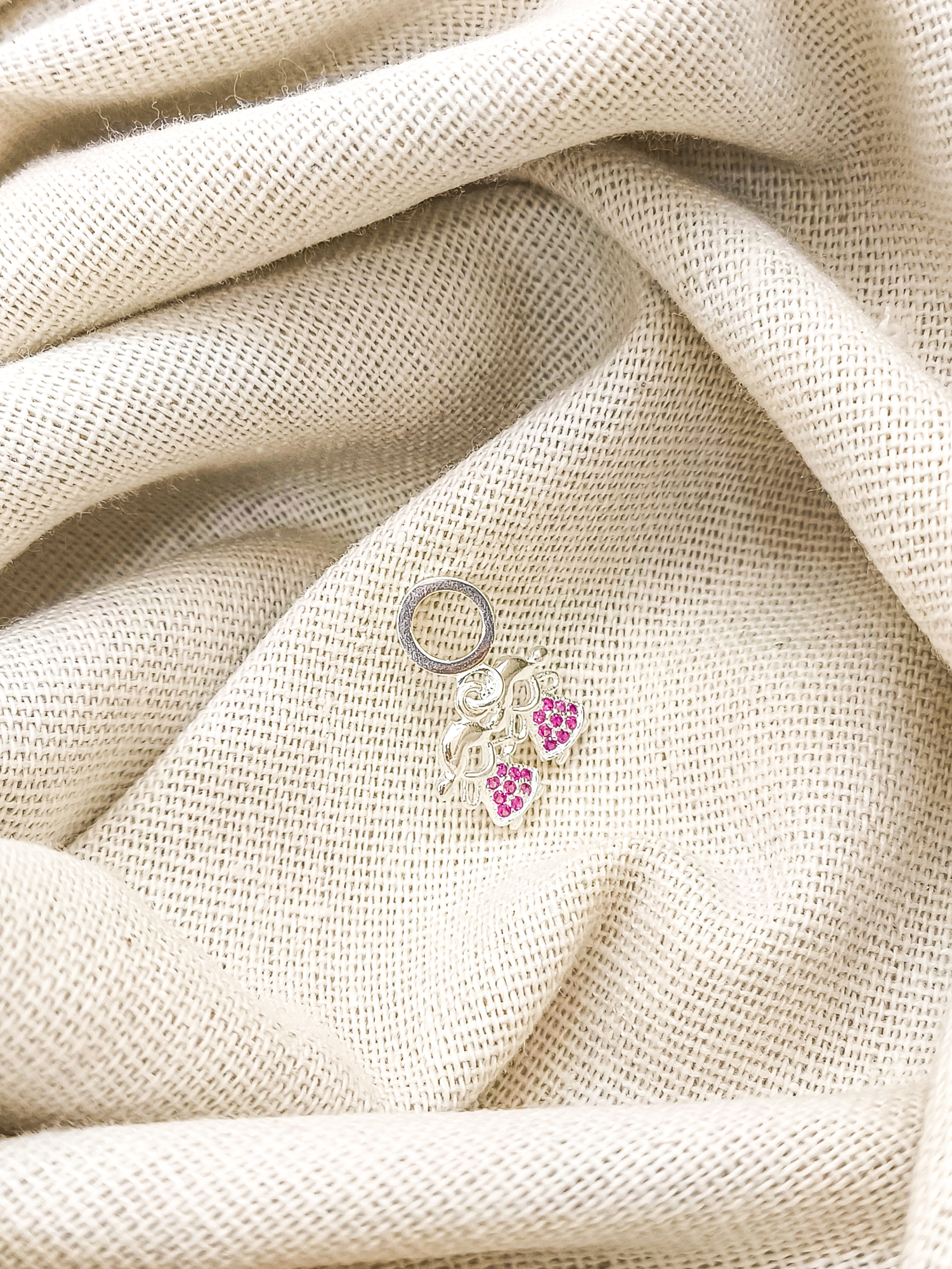 Berloque em prata 925, com 2 bonecas filhas com vestido com cravação de zircônias rosa pink.