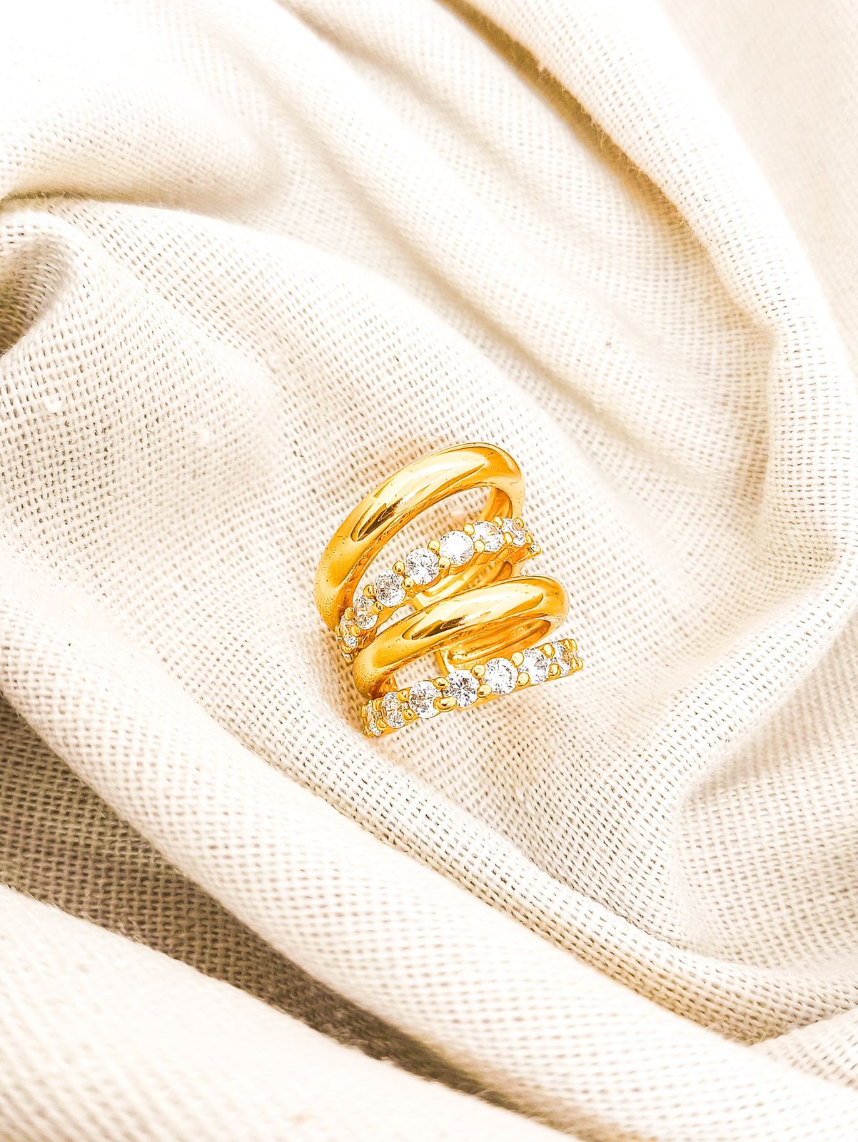 Página Inicial / Brincos / Piercing falso 4 voltas, com 2 cravejadas em banho de ouro
