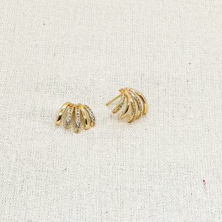 Brinco em banho de ouro 18k, argola de pino 4 voltas sendo 1 volta toda cravejada em zircônias brancas. Tamanho: 25mm.