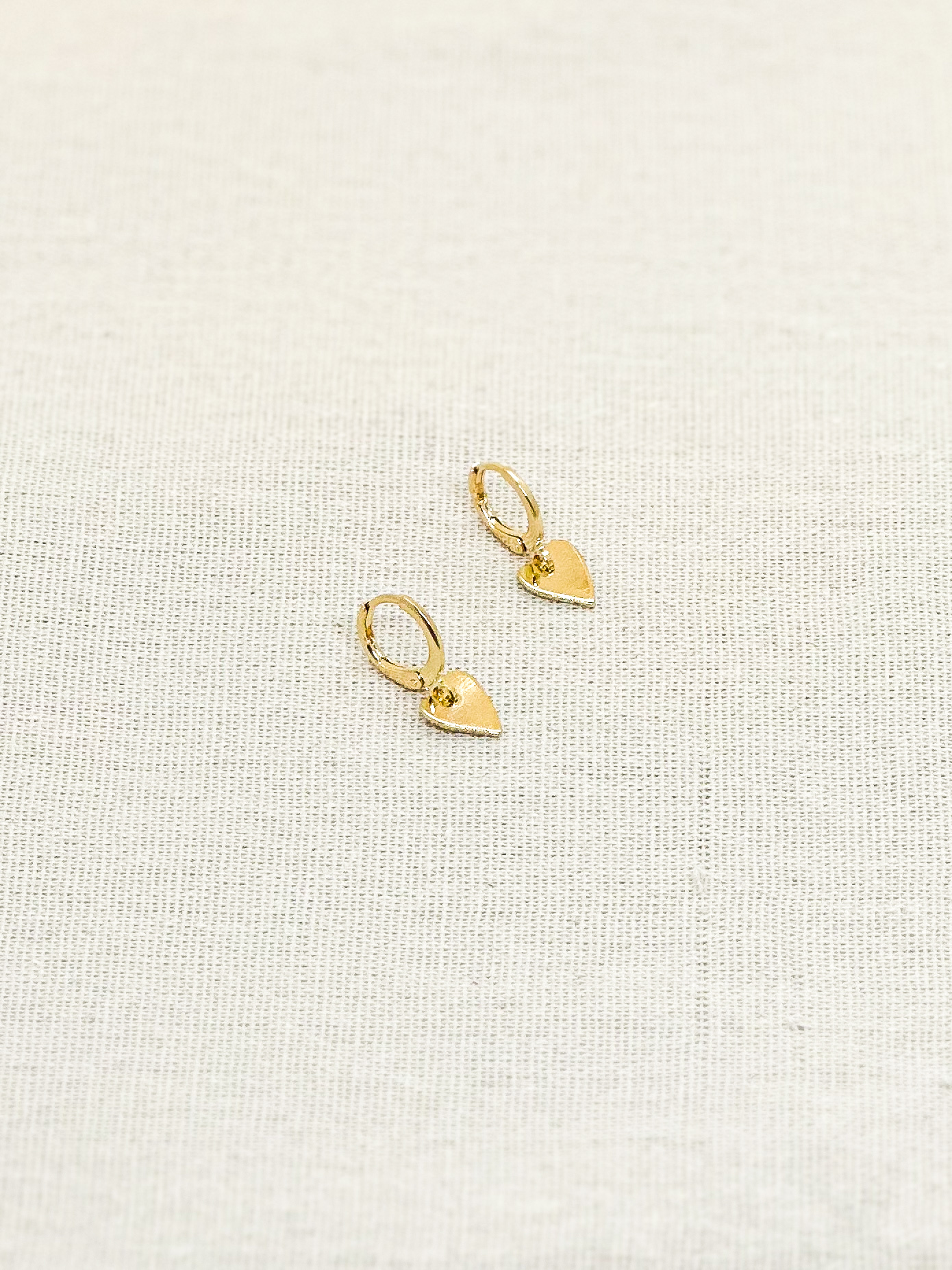 Brinco em banho de ouro 18k, argola click articulável com pingente coração liso 1cm. Tamanho: 2cm.