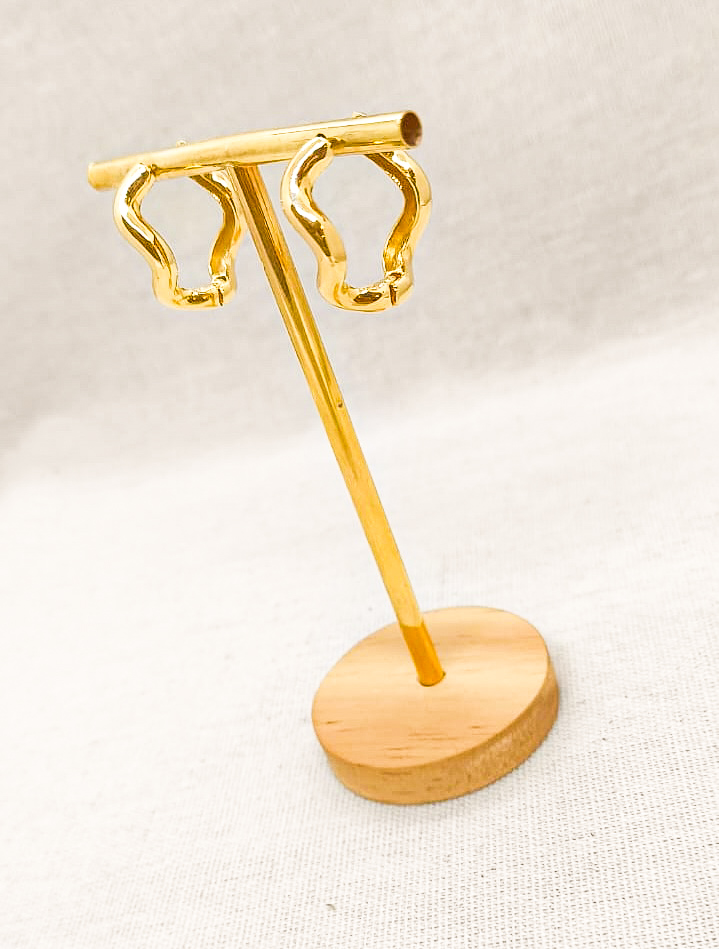 Argola média em banho de ouro, fecho click, orgânica. Altura: 20mm.