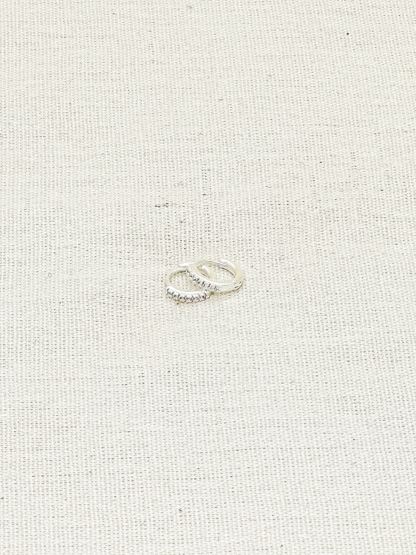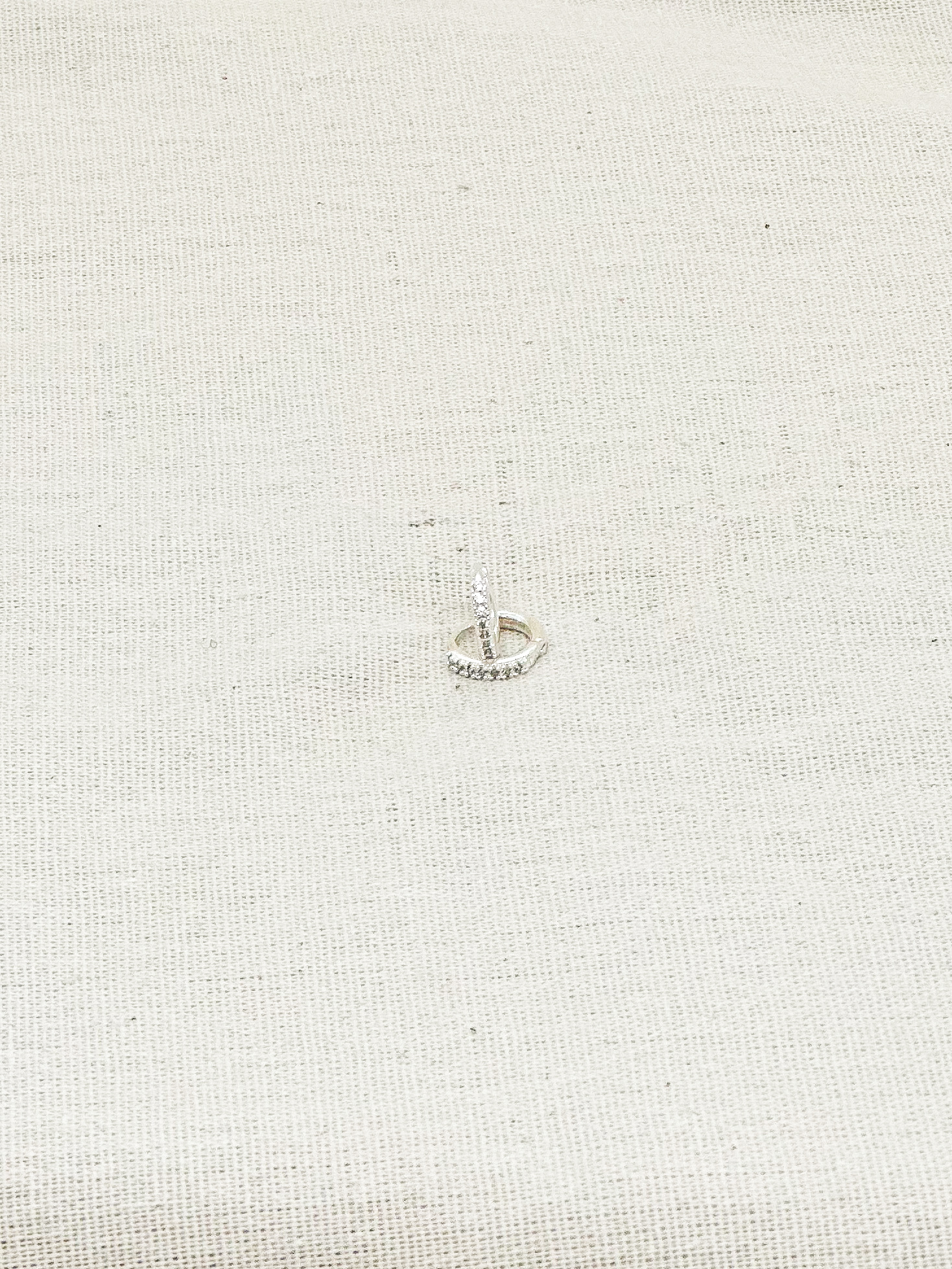 Brinco em prata leve, argola click, com 1 fileira de cravação em zircônia branca. Tamanho: 1cm.