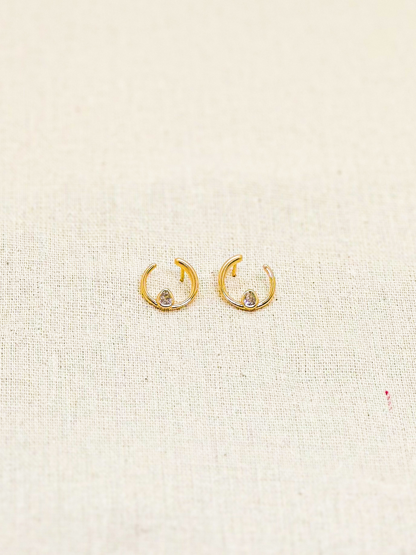 Argola frontal em banho de ouro 18K com gota no centro.