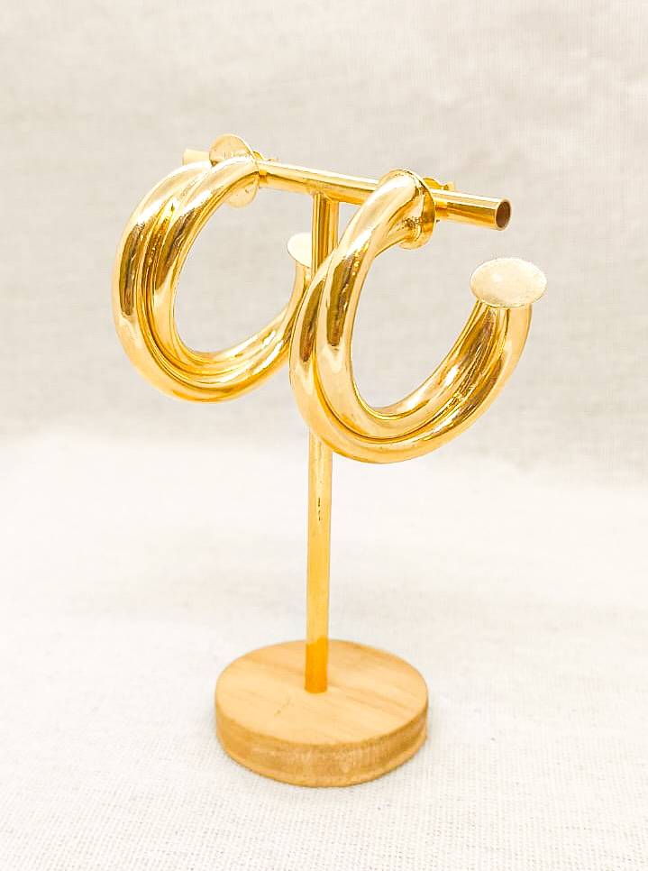 BRINCO BANHO DE OURO ARGOLA EM TUBO PINO MAXI 2 VOLTAS.
