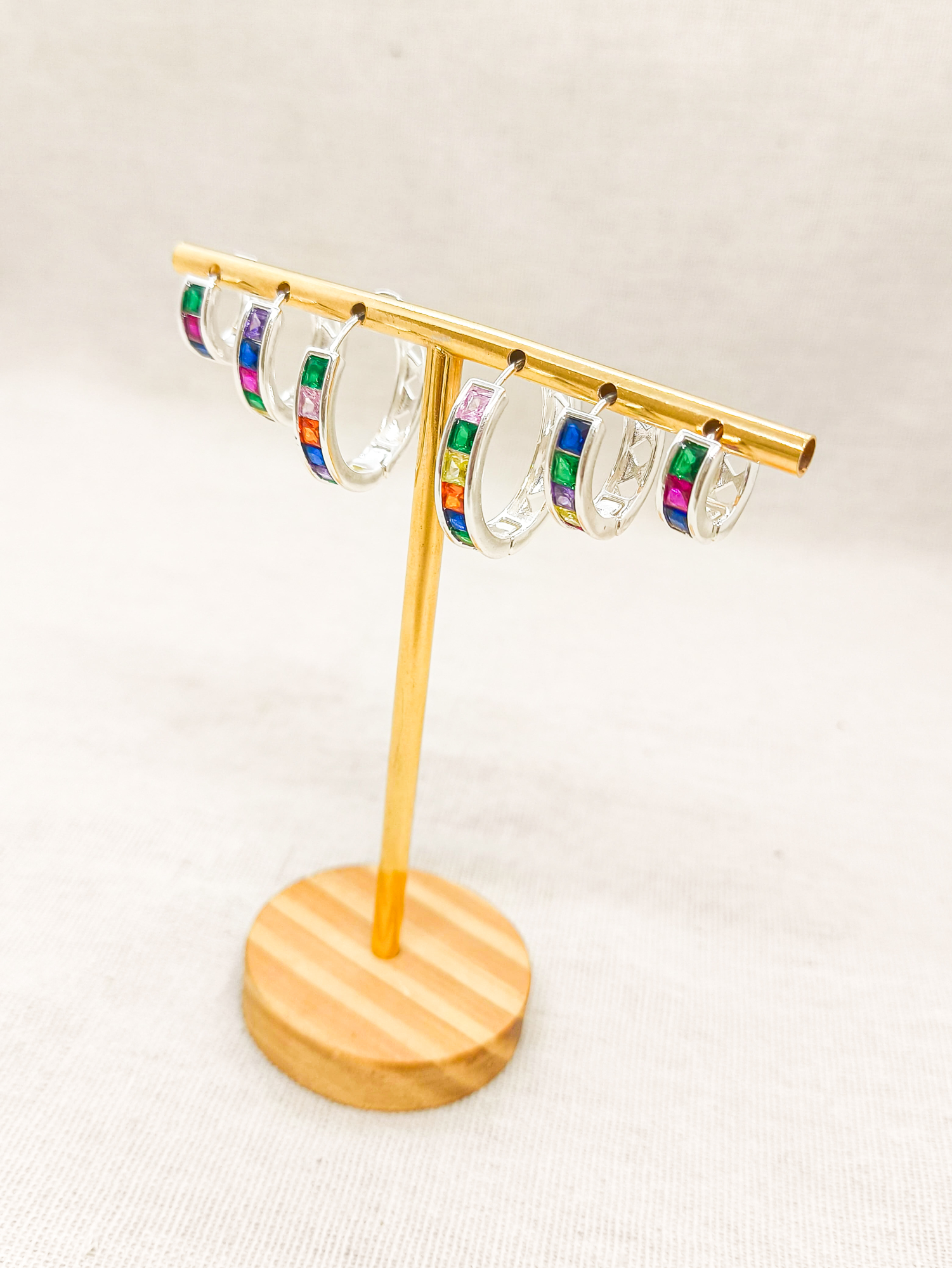 Brinco em Ródio , Argola zircônias navetes coloridas.