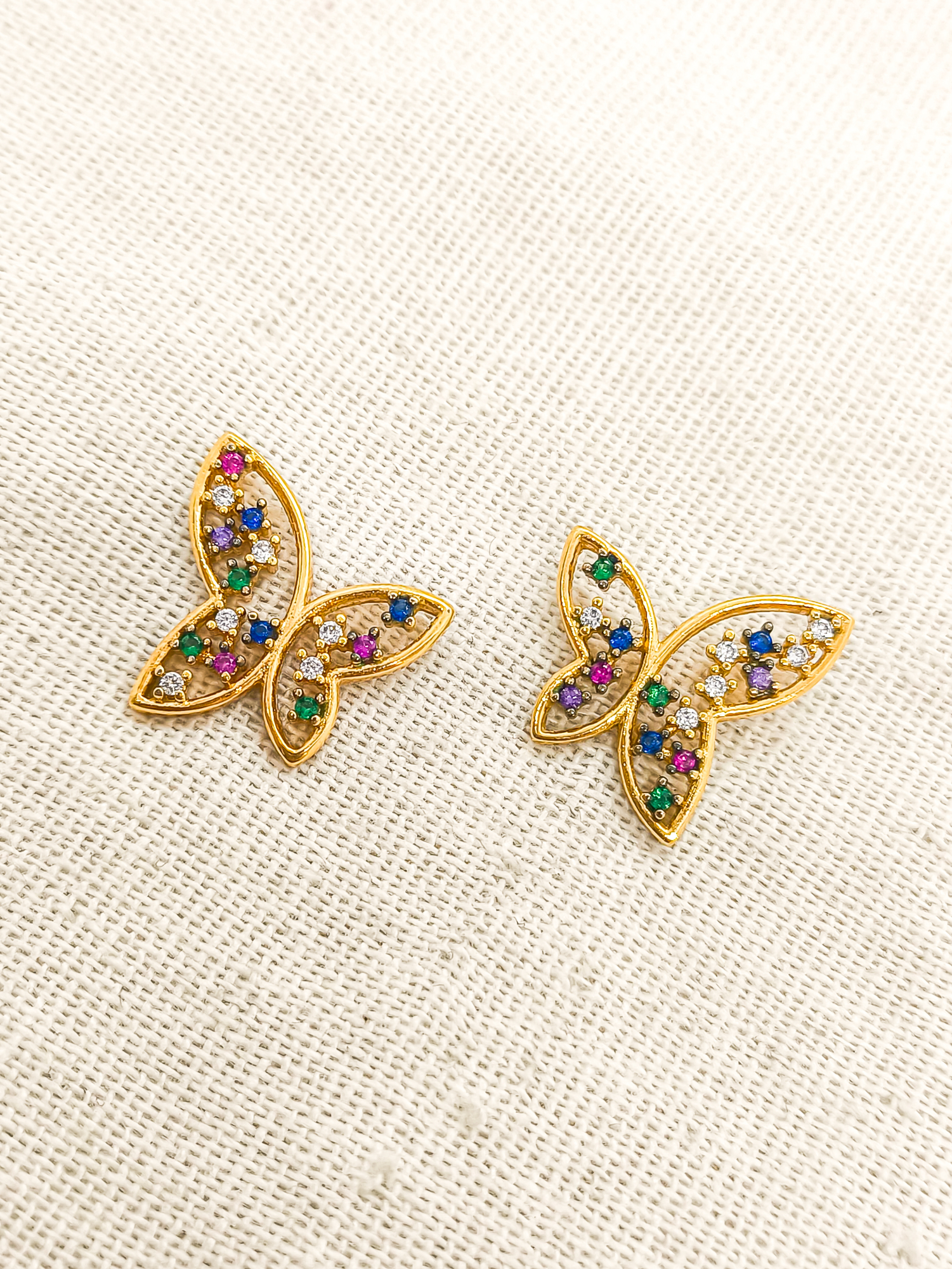 Página Inicial / Brincos / Borboleta com asas com pontos de zircônias coloridas
