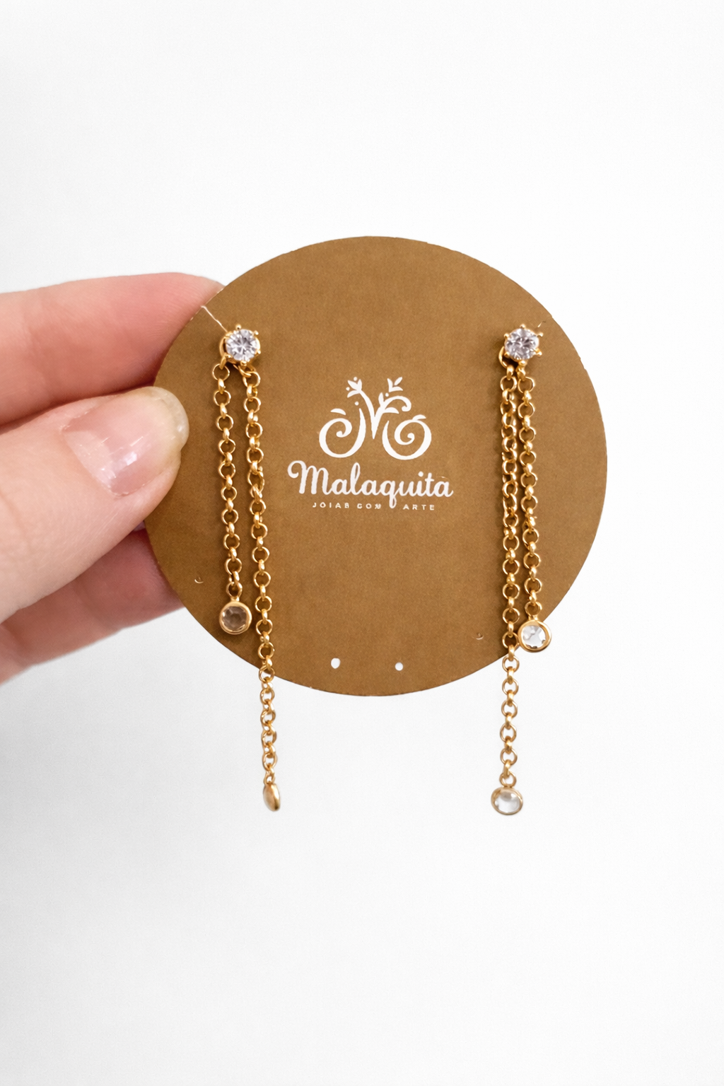 Brinco em banho de ouro 18K 2x1 com ponto de luz + corrente com ponto de luz.