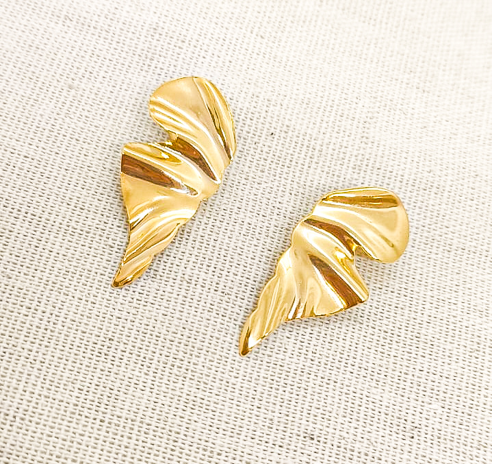 Brinco em banho de ouro 18k, asa de borboleta orgânica. Tamanho: 31mm.
