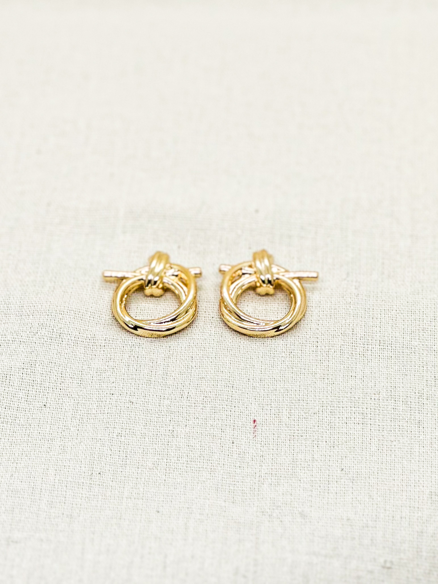 Brinco em banho de ouro 18k, brinco liso, em formato circular com nó. Tamanho: 30mm.