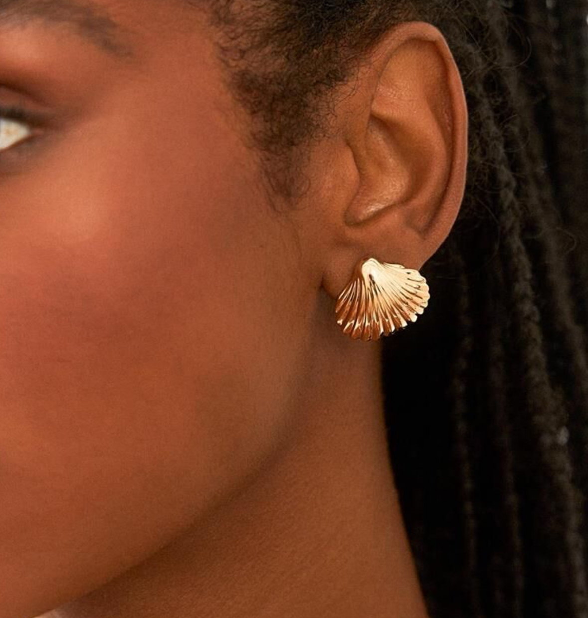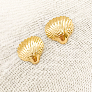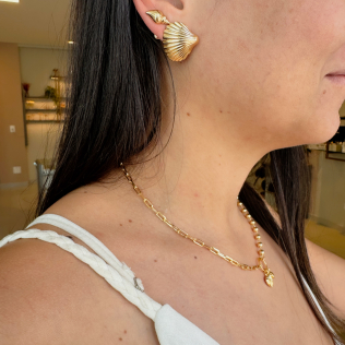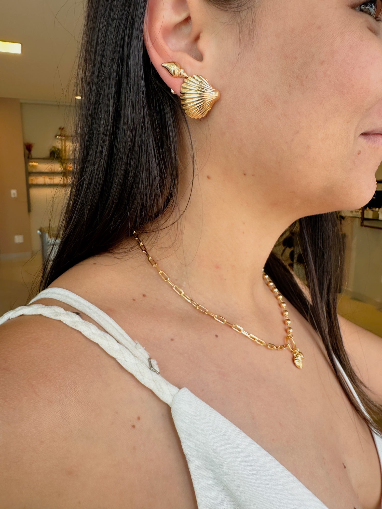 Brinco concha liso, em banho de ouro. Tamanho: 20mm.