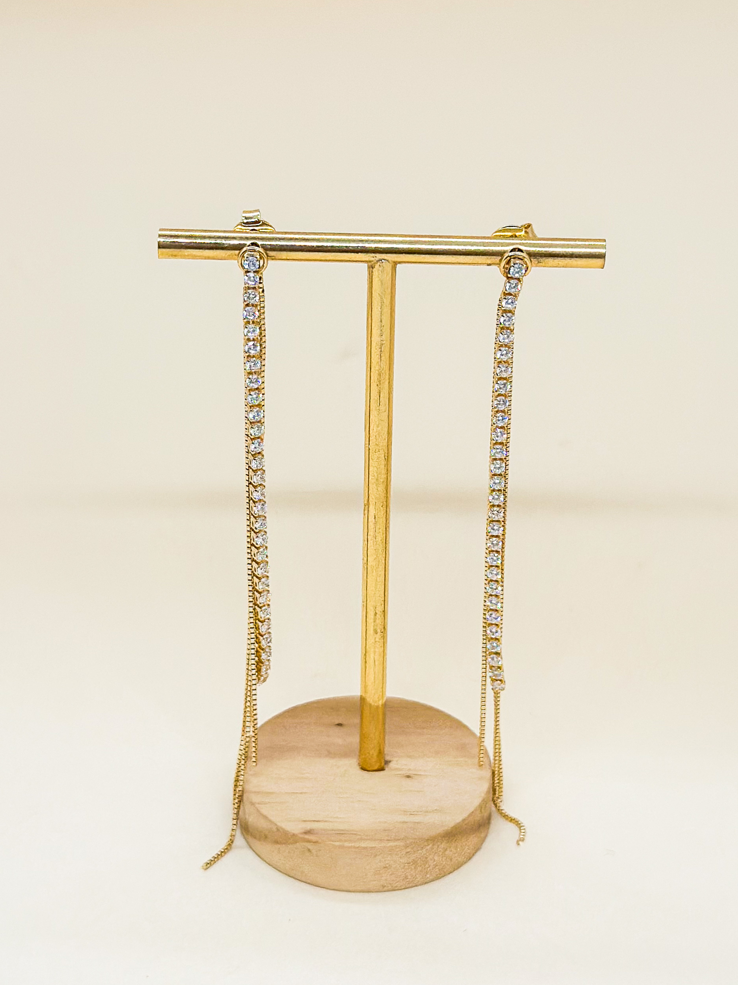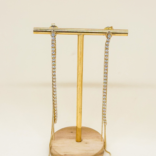 Brinco em banho de ouro 18k, com corrente riviera e corrente tripla veneziana para encaixe (removível). Tamanho: 20cm