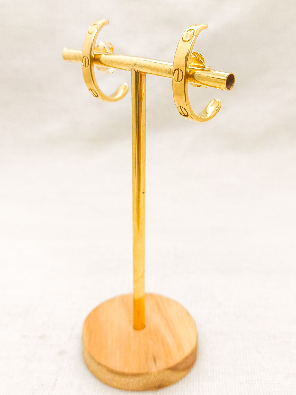 Brinco em banho de ouro 18k, modelo ear hook, aro liso réplica de joalheria.