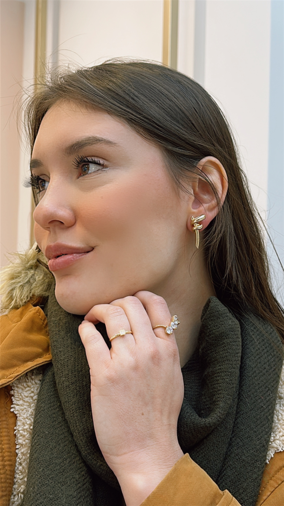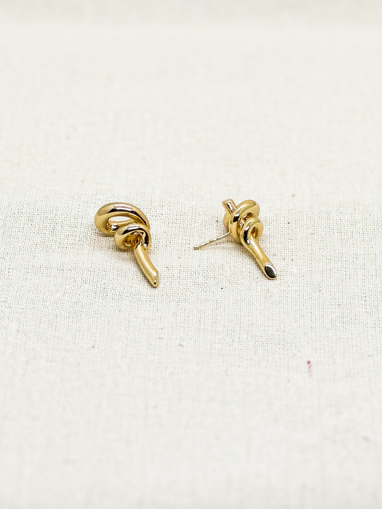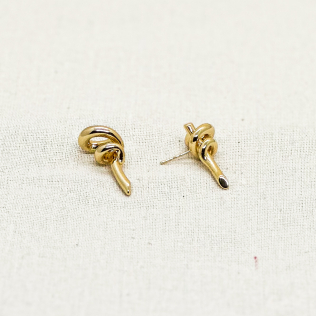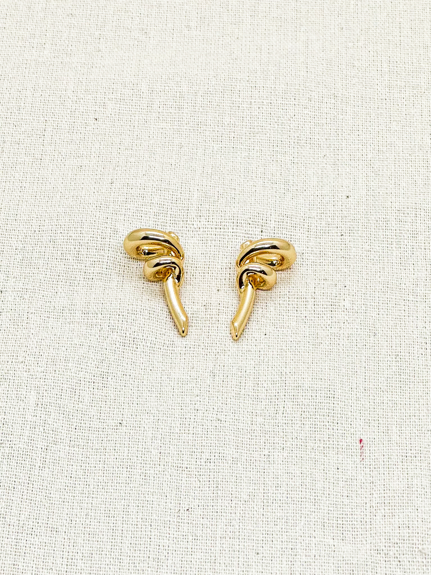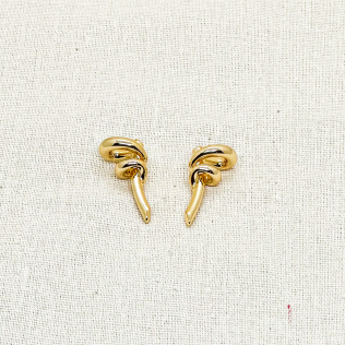 Brinco em banho de ouro 18k, modelo fio grosso com nó ne ponta. Tamanho: 30mm.