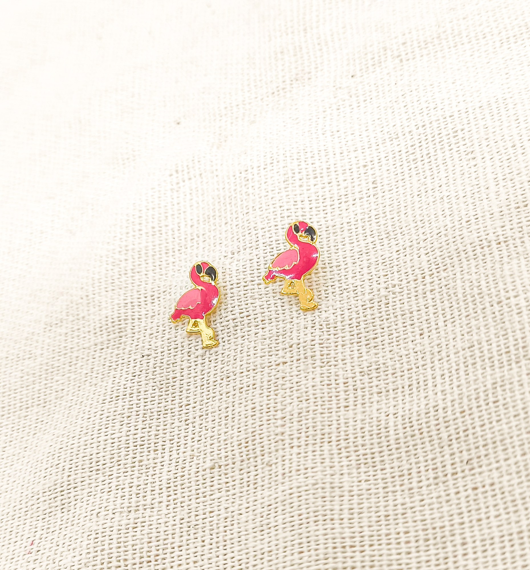 Brinco infantil em banho de ouro 18k, Flamingo resinado.