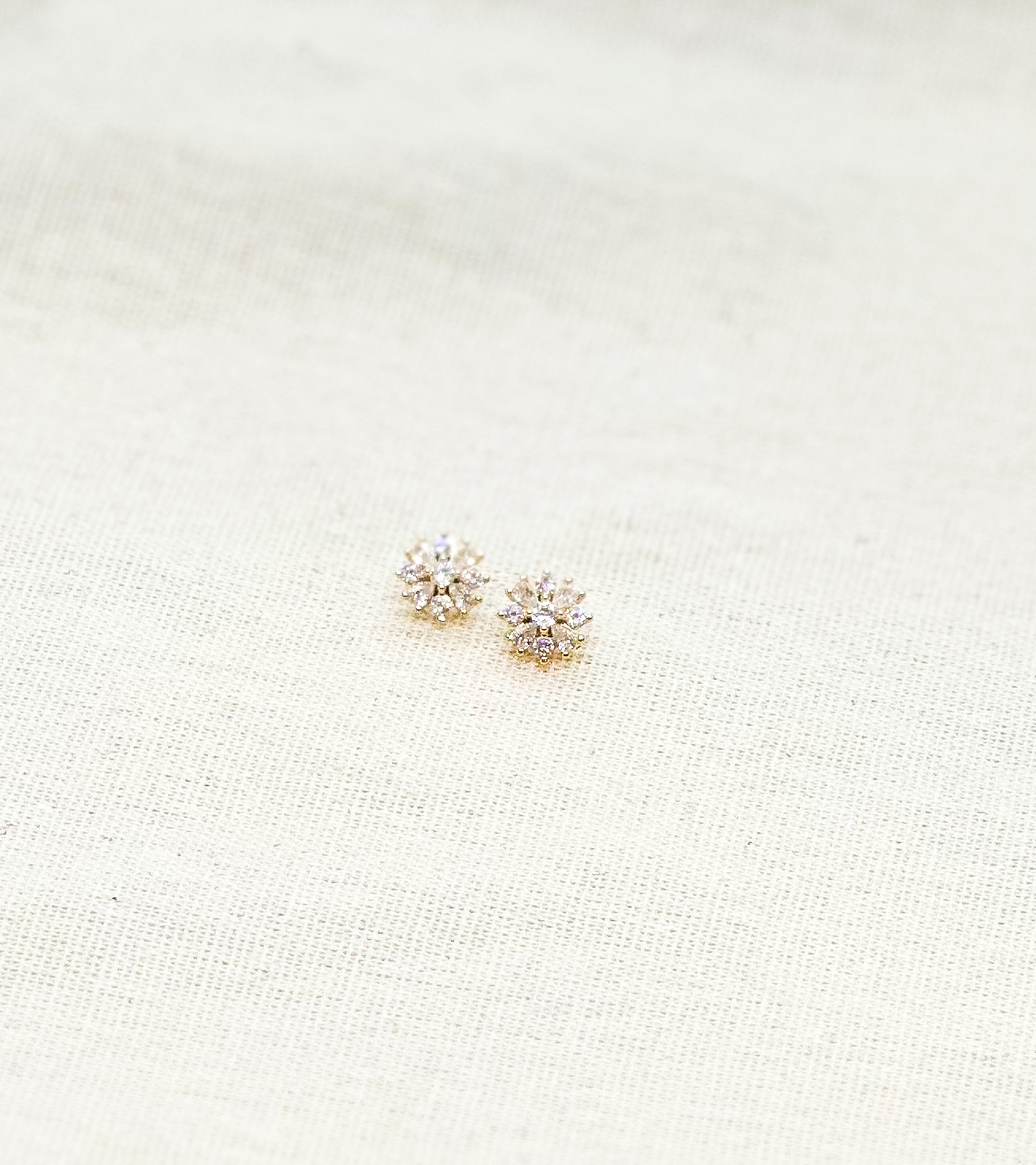 Brinco em banho de ouro 18k, em formato de flor de zircônias brancas formato de mini gota com 8 pétalas e miolo. Tamanho: 10mm.
