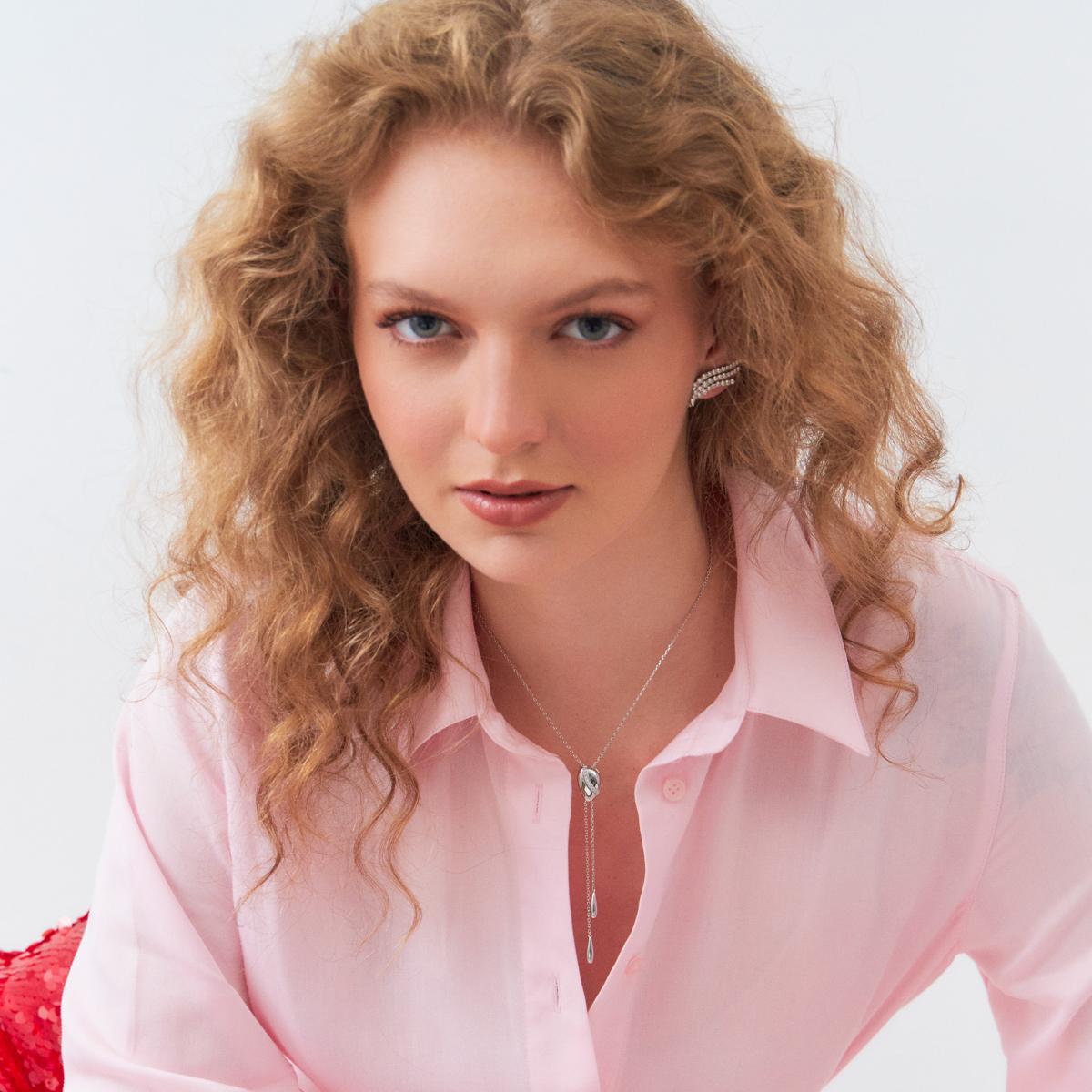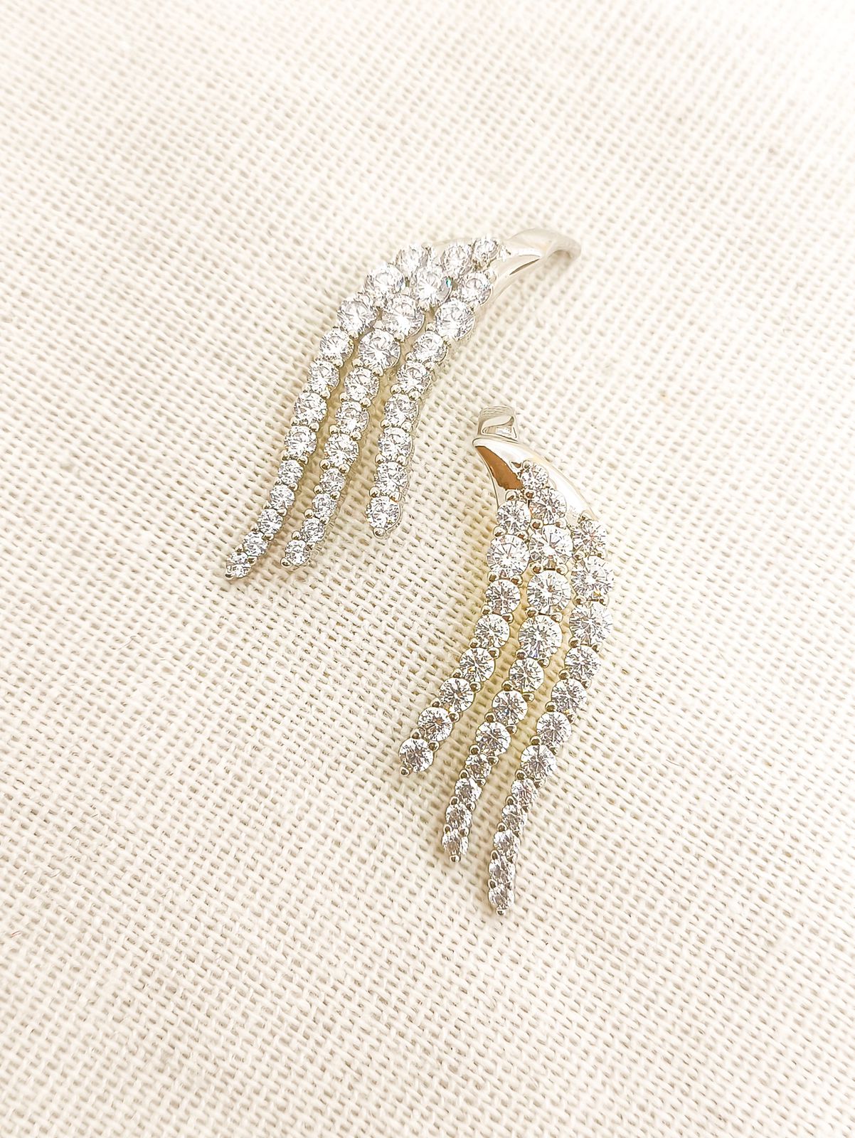 Brinco curvo cravejado de zircônias banhado em ródio branco.