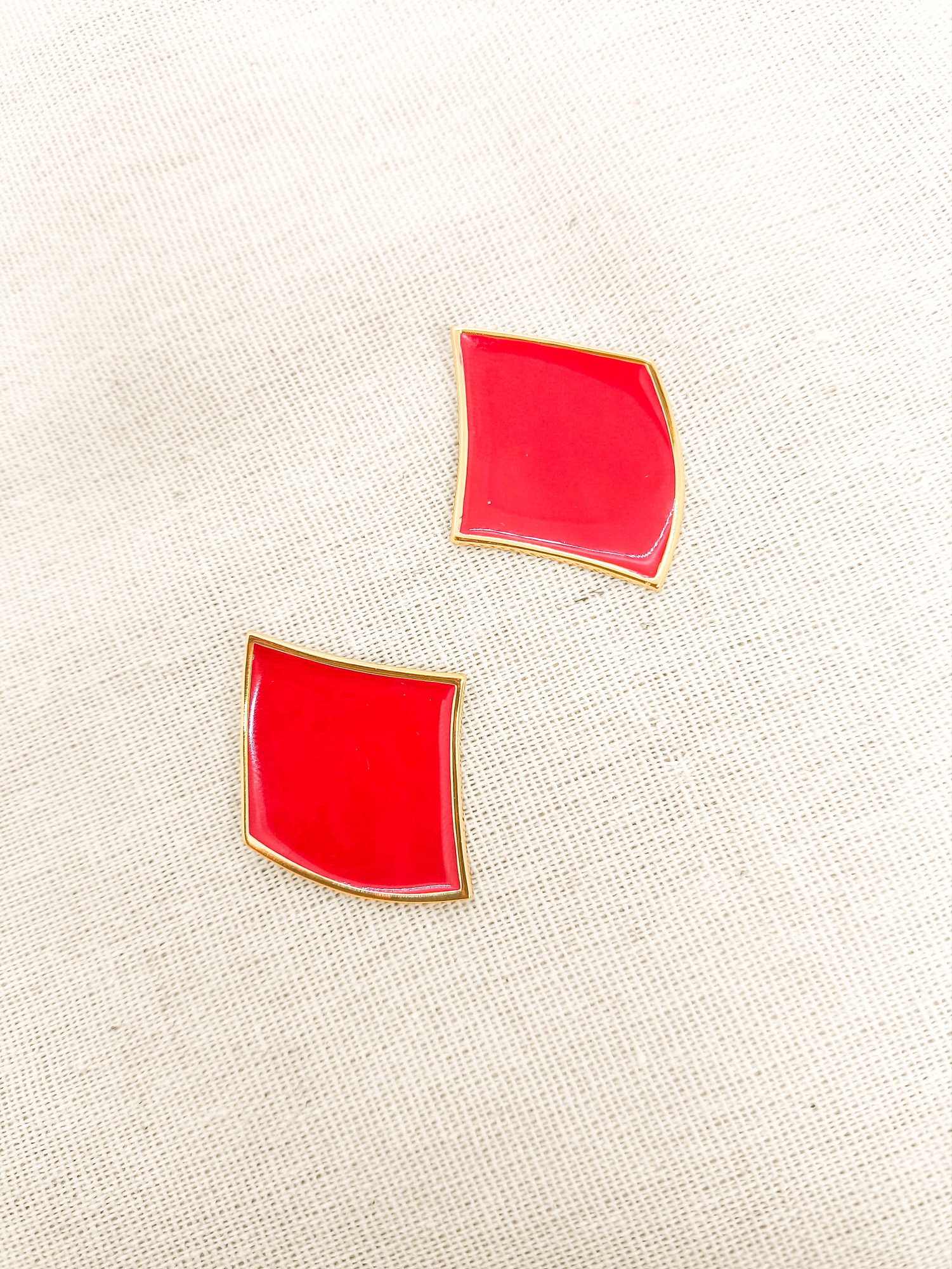 Brinco em banho de ouro 18K em formato de losango resinado em tom vermelho.