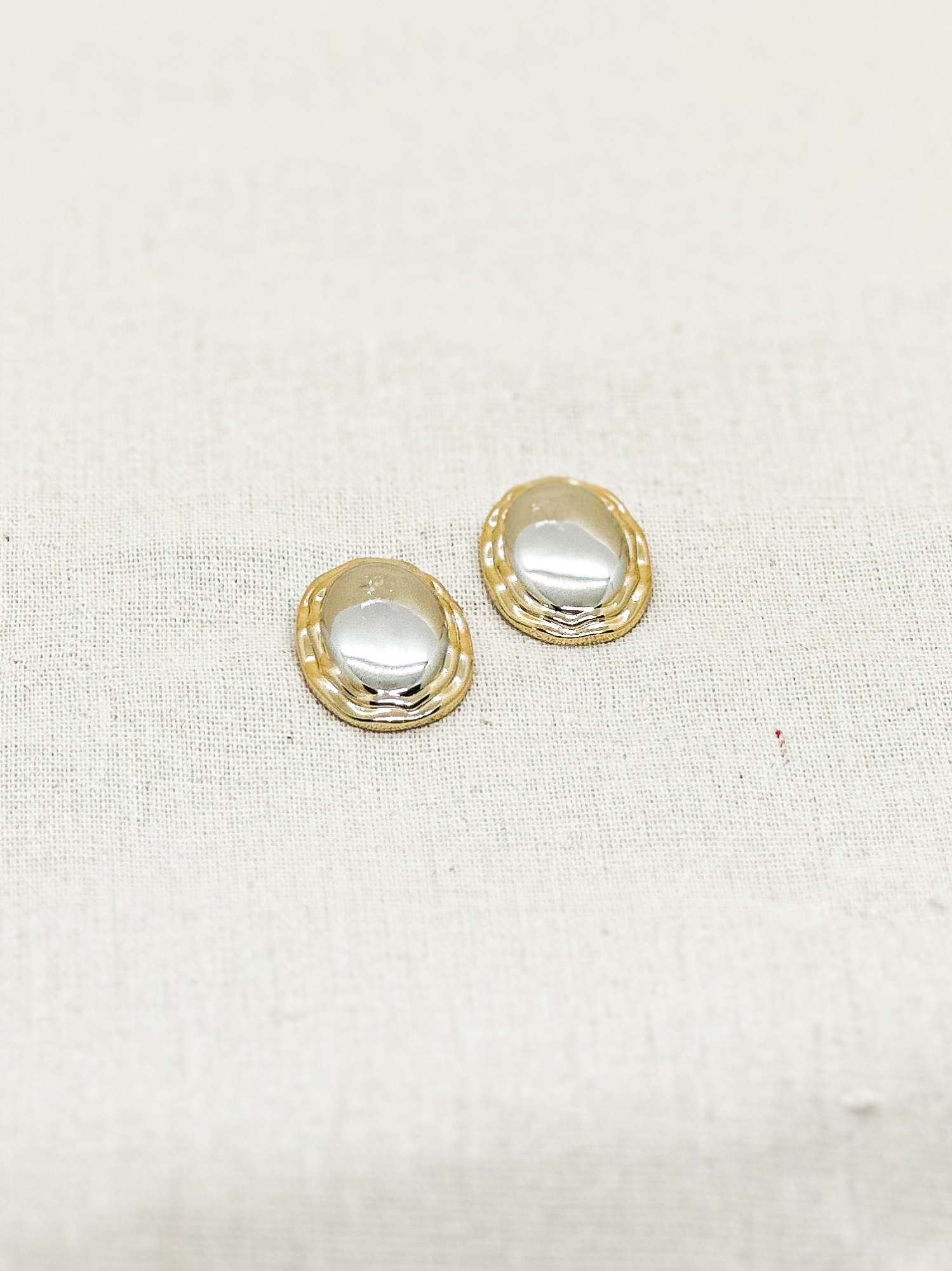 Brinco oval com base e borda em banho de ouro 18k, com centro em banho de ródio branco. Comprimento: 2,8cm Largura: 1,9cm.