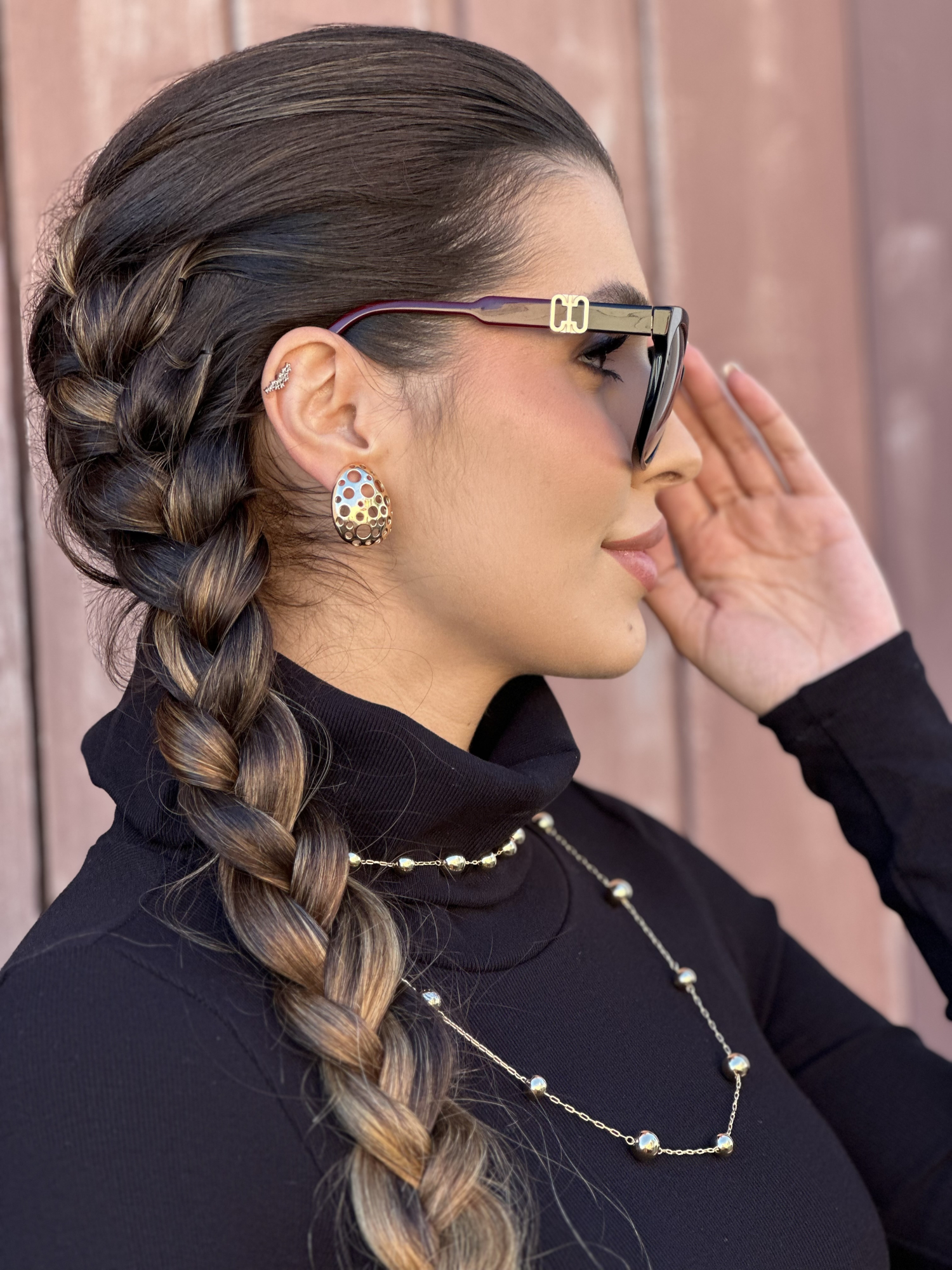 Página Inicial / Brincos / Brinco oval com bolas vasadas