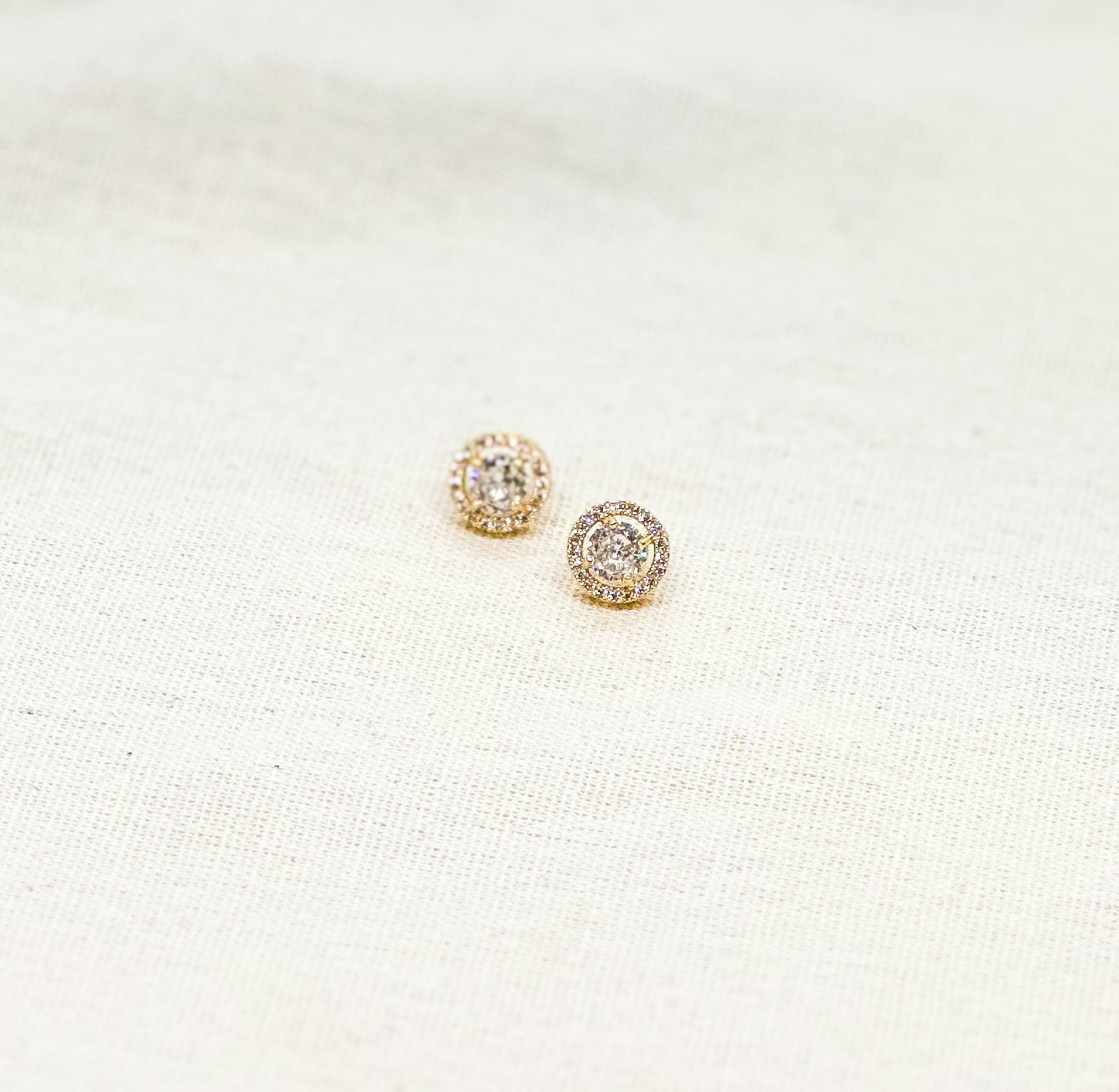 Brinco em banho de ouro 18k, ponto de luz de zircônia 7mm, com moldura cravejada em microzircônias. Tamanho: 12mm.
