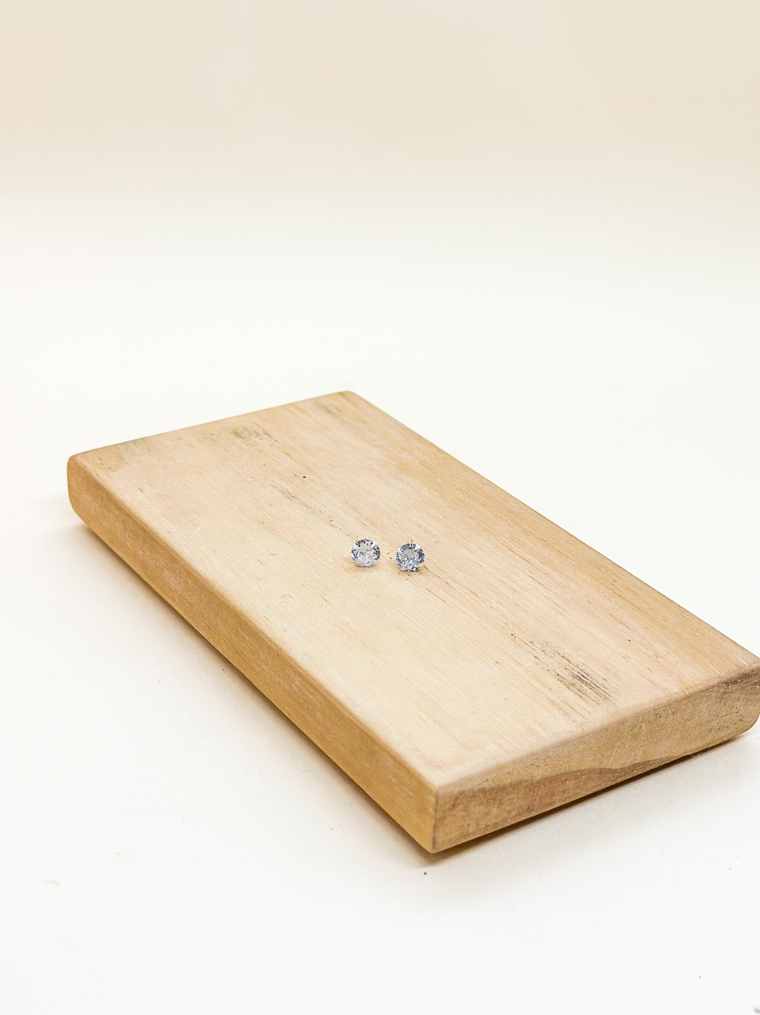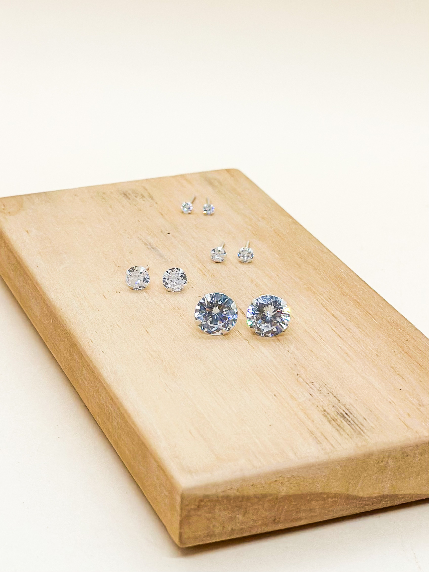 Brinco em prata 925, modelo ponto de luz redondo com zircônia 6mm.