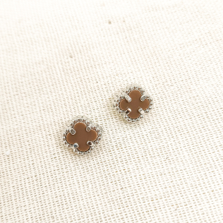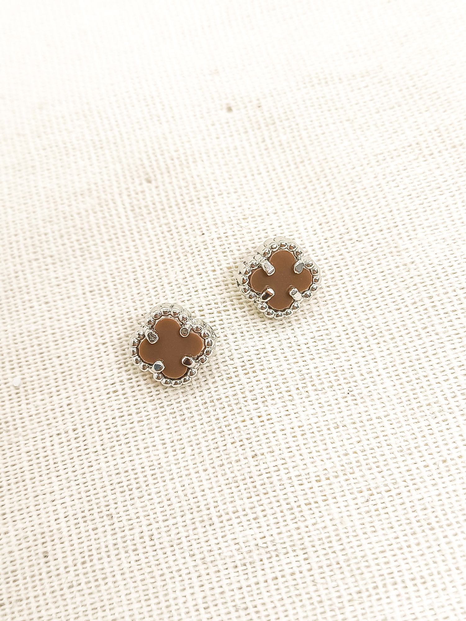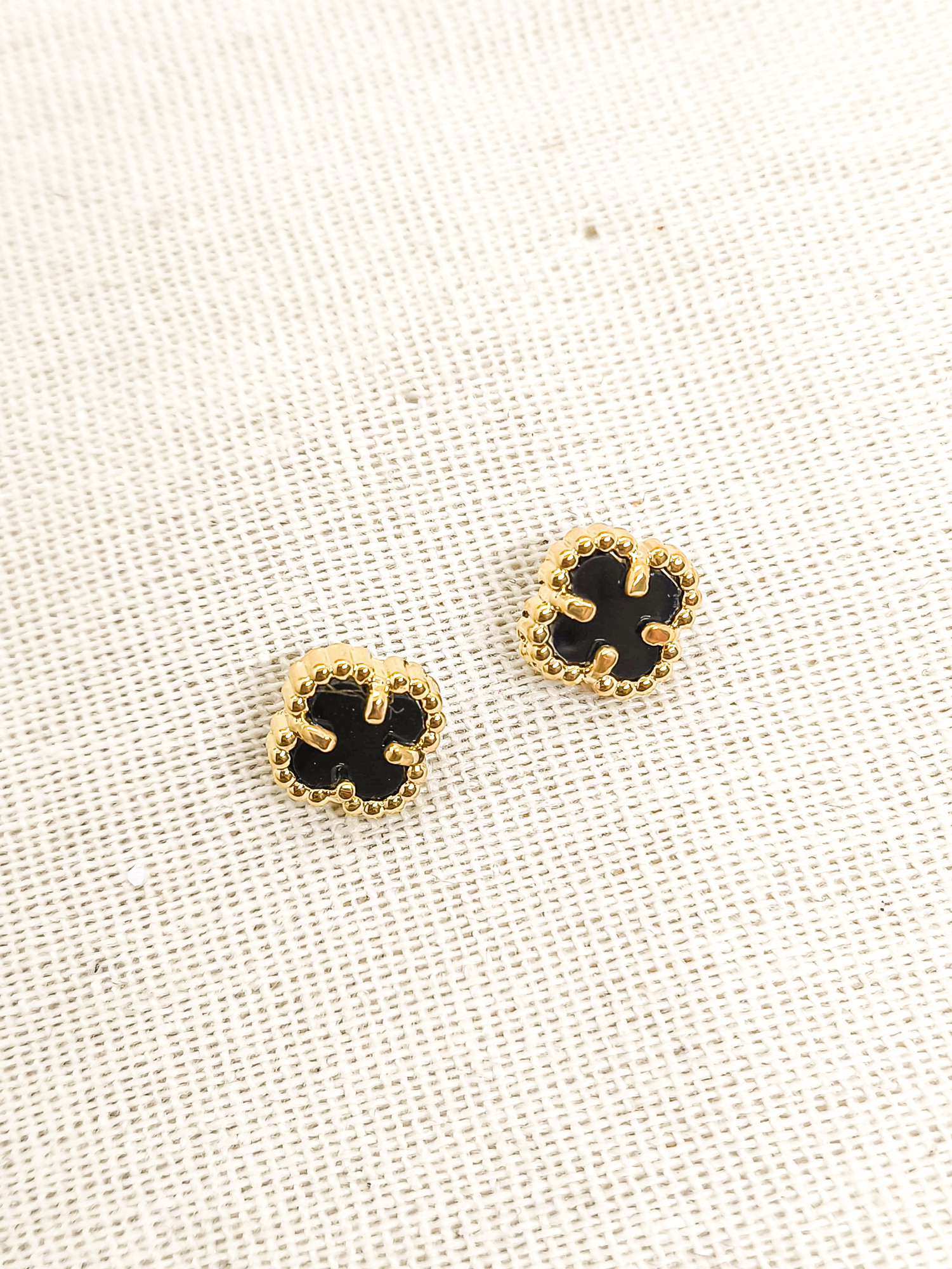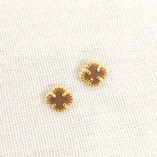 Brinco trevo P em Banho de ouro 18K / Ródio, cores.
